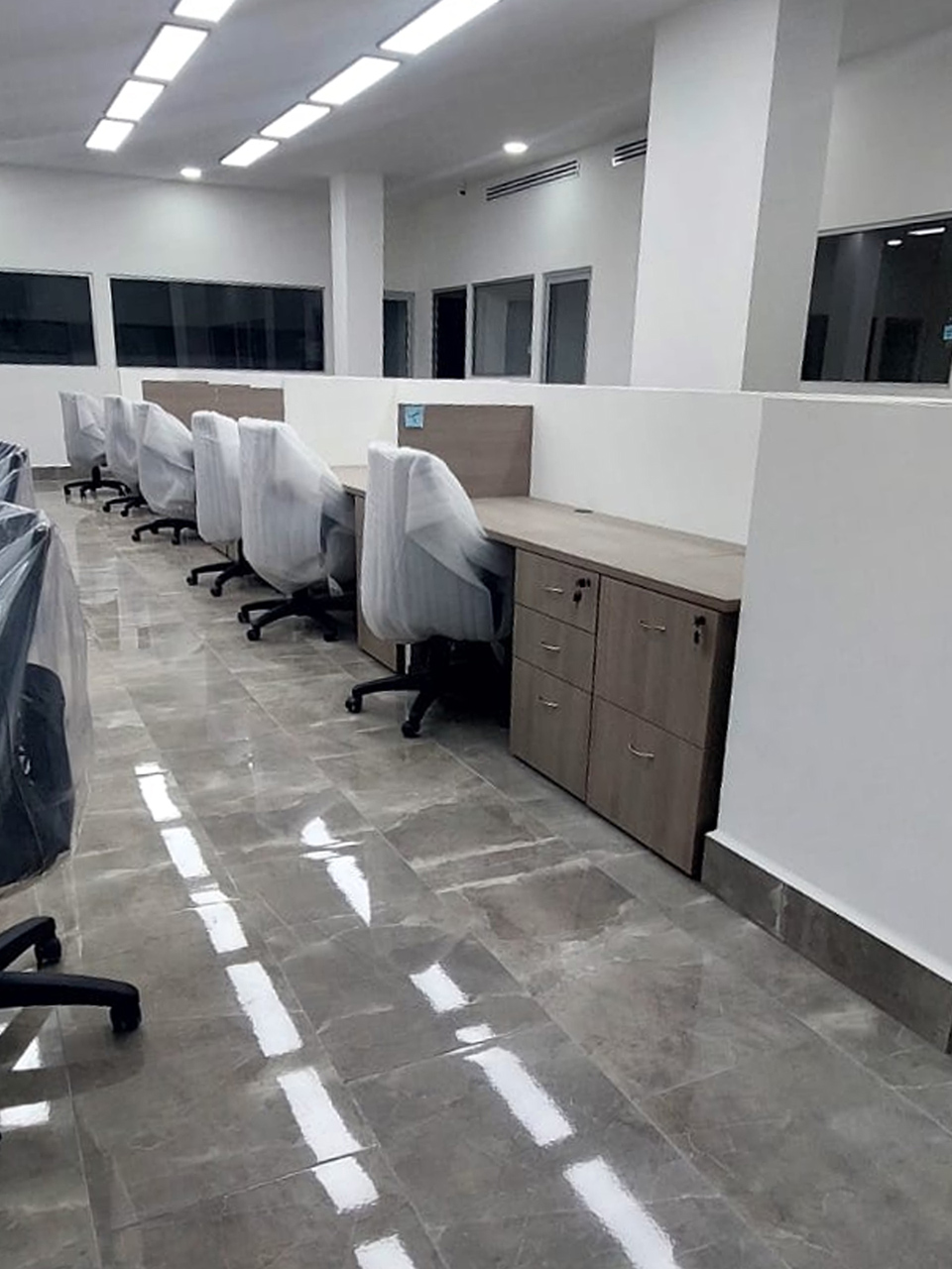 Instalacion de áreas de trabajo, módulos, recepción, crdenza, sala de juntas, cocinetas y lavanetas