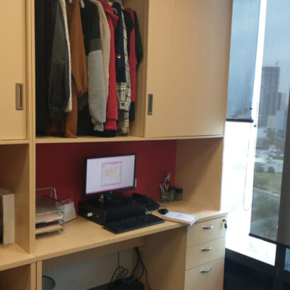 Instalación de escritorios con libreros para sobreponer para ropa y zapatos