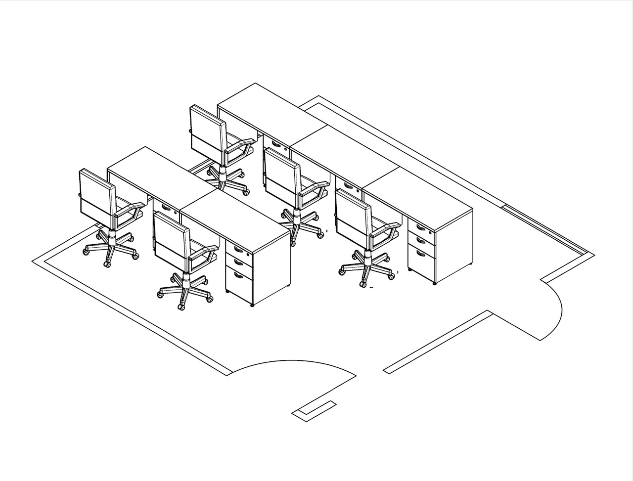 Instalación de escritorios rectos con cajoneras tamaño carta