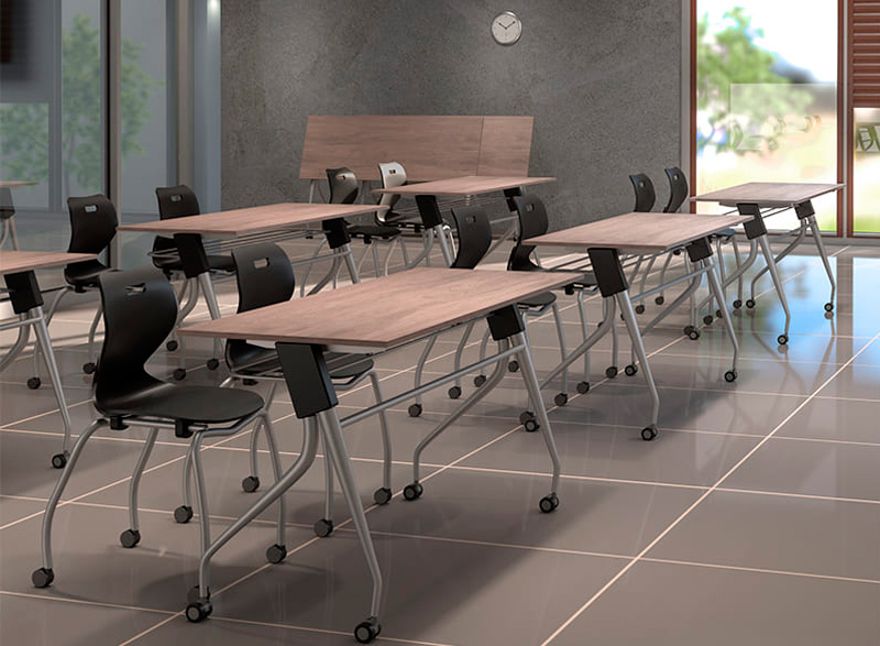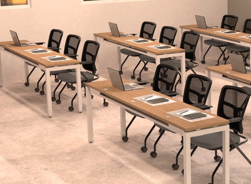 Mesas de capacitación funcionales y modernas que impulsan la productividad y el aprendizaje en cada sesión.