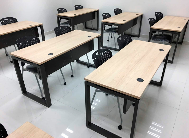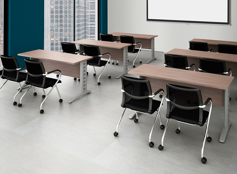 Con nuestras mesas de capacitación, cada participante dispone de un área de trabajo cómoda y bien distribuida, facilitando la colaboración y la concentración. Fabricadas con materiales resistentes y acabados de calidad, nuestras mesas se adaptan a diferentes configuraciones y necesidades, desde espacios pequeños hasta grandes salones de capacitación.