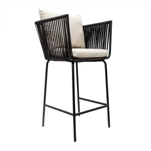 Chetumal banco metal negro cuerda negra cojinería loneta