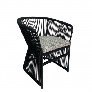 Chapala silla metal negro cuerda gris liso con cojín curri