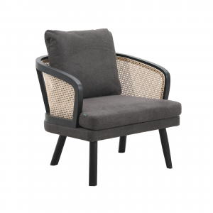 Cinque terre sillón, fabricado en madera de haya color negro, ratán natural. Tapizado en tela color gris.