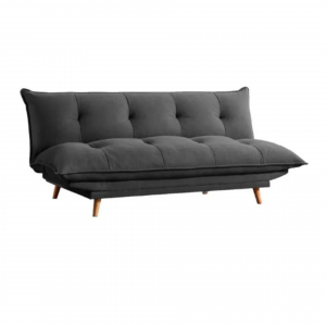 Cinque terre sofá, fabricado madera de haya color negro, ratán natural. Tapizado en tela color gris.