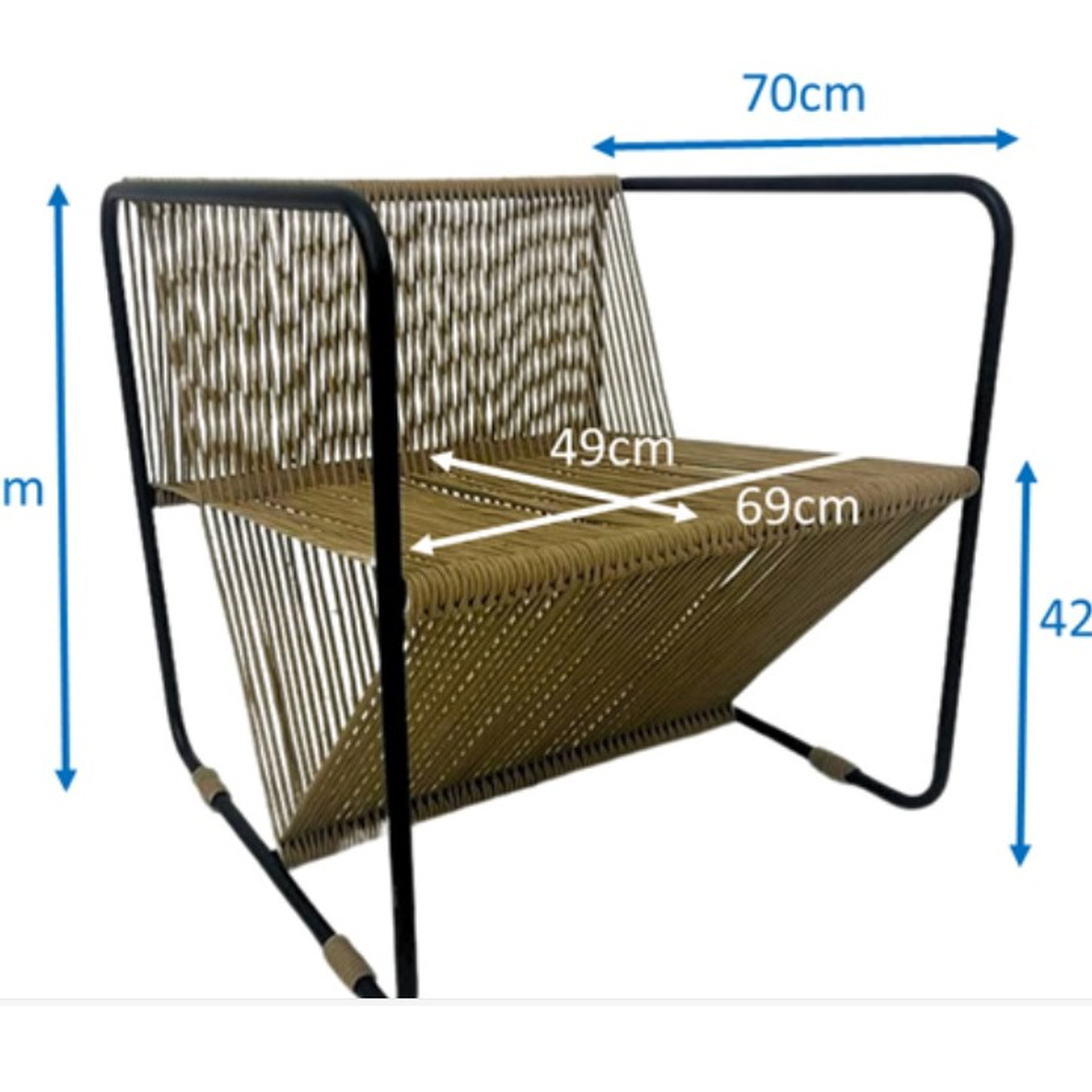 Fabricada en estructura de acero y tejida en cuerda de multifilamento de propileno..