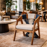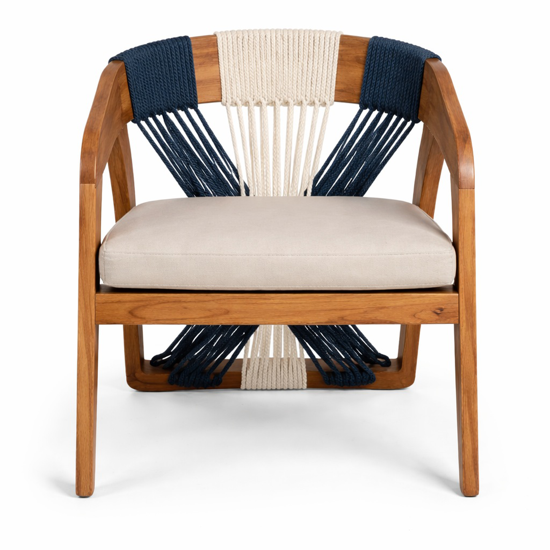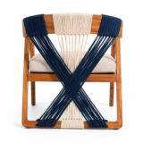Sillón fabricado en madera de parota o similar, cuerda de multifilamenteo y cojín con tela poliester para uso exterior techado <div id="adicional"> <br> PRODUCTO DE FABRICACIÓN<br> Tiempo de entrega: 6 a 8 semanas</div>