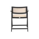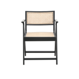 Amalfi Silla plegable con brazos, fabricada en madera de haya color negro y respaldo móvil de ratán que se adapta a la espalda. Fácil de plegar para ahorrar espacio.