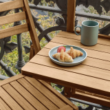 La mesa plegable de balcón Amarilis, hecha de madera maciza de acacia con certificación FSC 100%, mide 40 x 42 cm. Su diseño práctico y elegante es ideal para espacios reducidos, permitiendo disfrutar de momentos al aire libre con estilo y sostenibilidad.