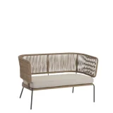 Sofá de 2 plazas con estructura de acero galvanizado y respaldo de cuerda. Respaldo artesanal. El trenzado de la cuerda está hecho a mano. Estructura de acero galvanizado resistente a la oxidación, a la corrosión y a los rayos UV. Apto para uso interior o en exteriores.