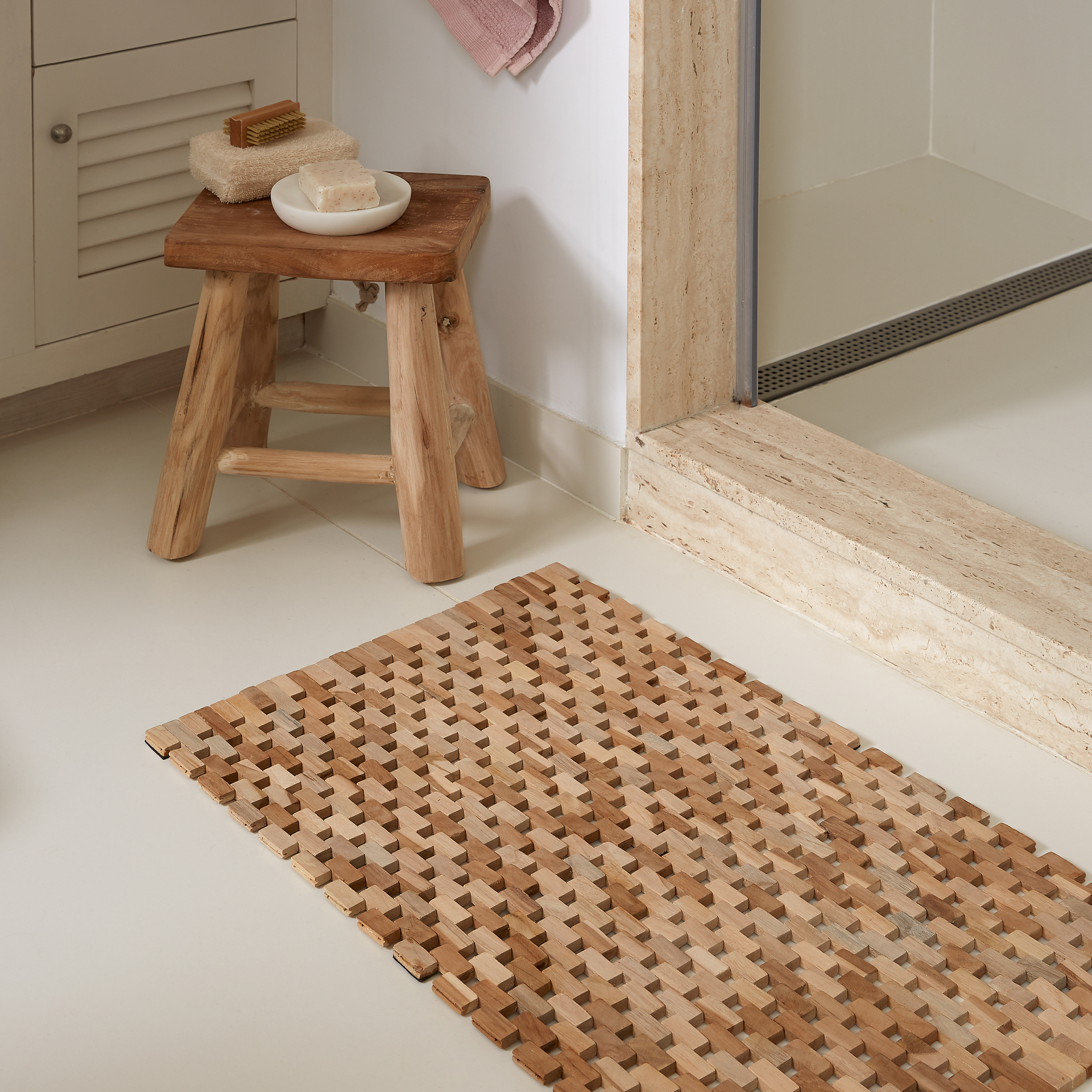 La madera de teca es la mejor opción para tu baño y con ella se ha hecho la alfombra de baño Azuray con la que evitarás el contacto frío del suelo. Además de ser resistente a la humedad y microorganismos derivados, es muy duradera y se seca rápid, para tu seguridad, también tiene un sistema de plástico antideslizantes. Enjoy your bath!