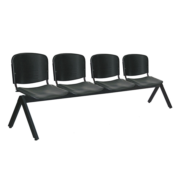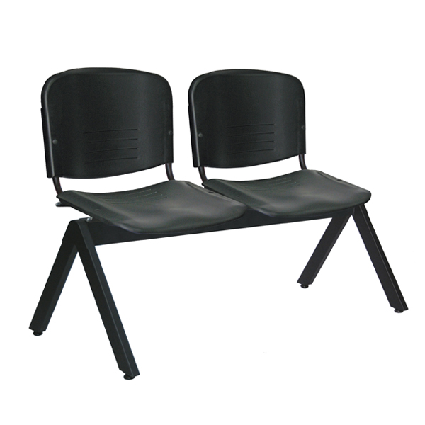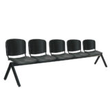 Banca con asiento y respaldo en perfil tubular de acero. Estructura metálica con travesaños que aportan firmeza y estabilidad, con acabado en pintura epóxica electrostática color negro mate.