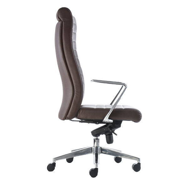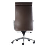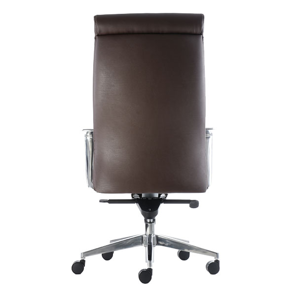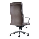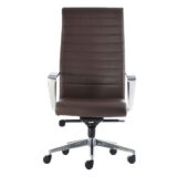 Sillón extra alto con brazos de poliuretano negro, base cromada, mecanismo de rodilla synchro con 5 posiciones de bloqueo y tapizado en piel.