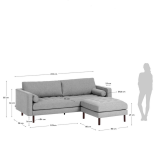 Sofá Bogart 3 plazas con reposapiés terciopelo gris claro 222 cm