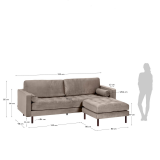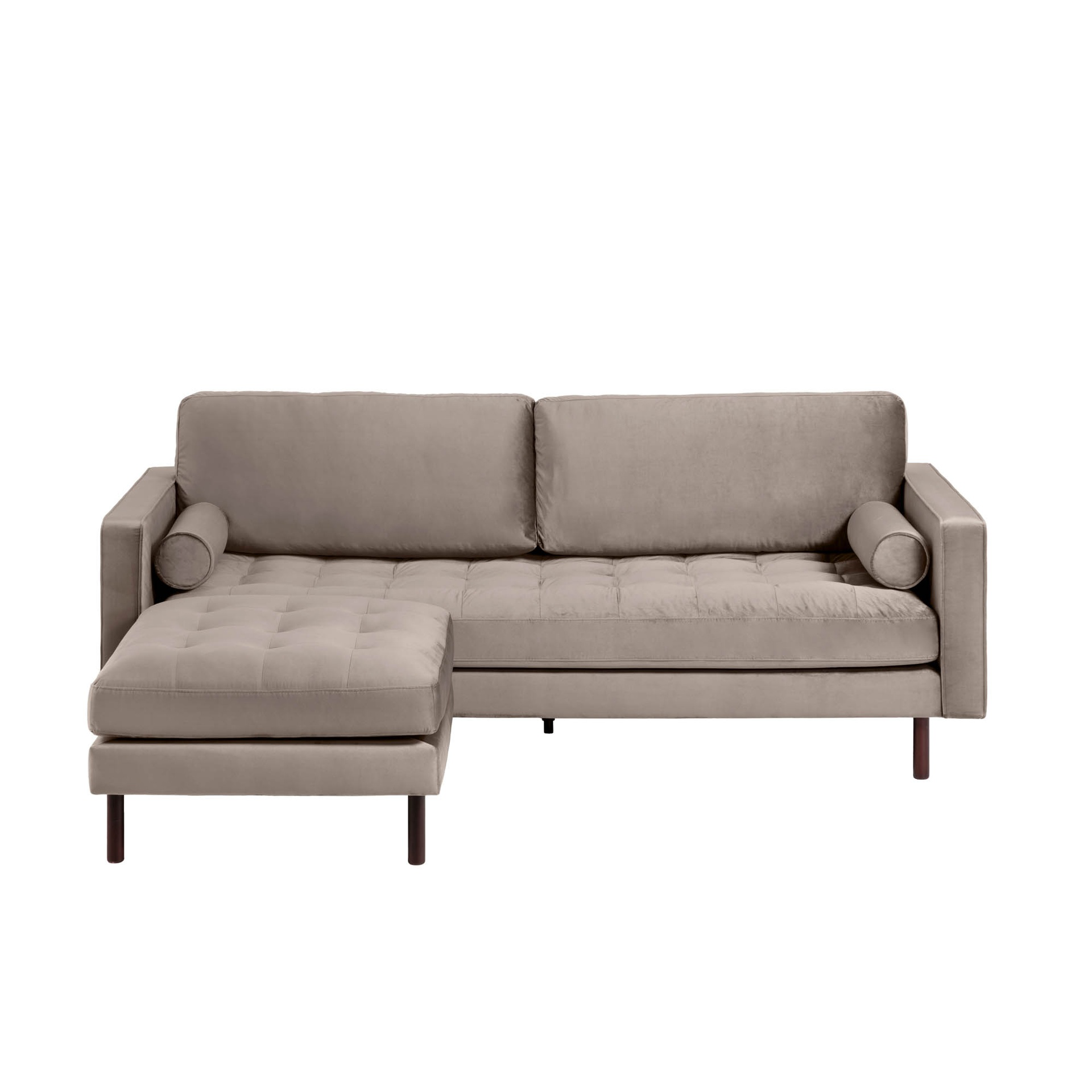 Sofá Bogart 3 plazas con reposapiés terciopelo topo 222 cm