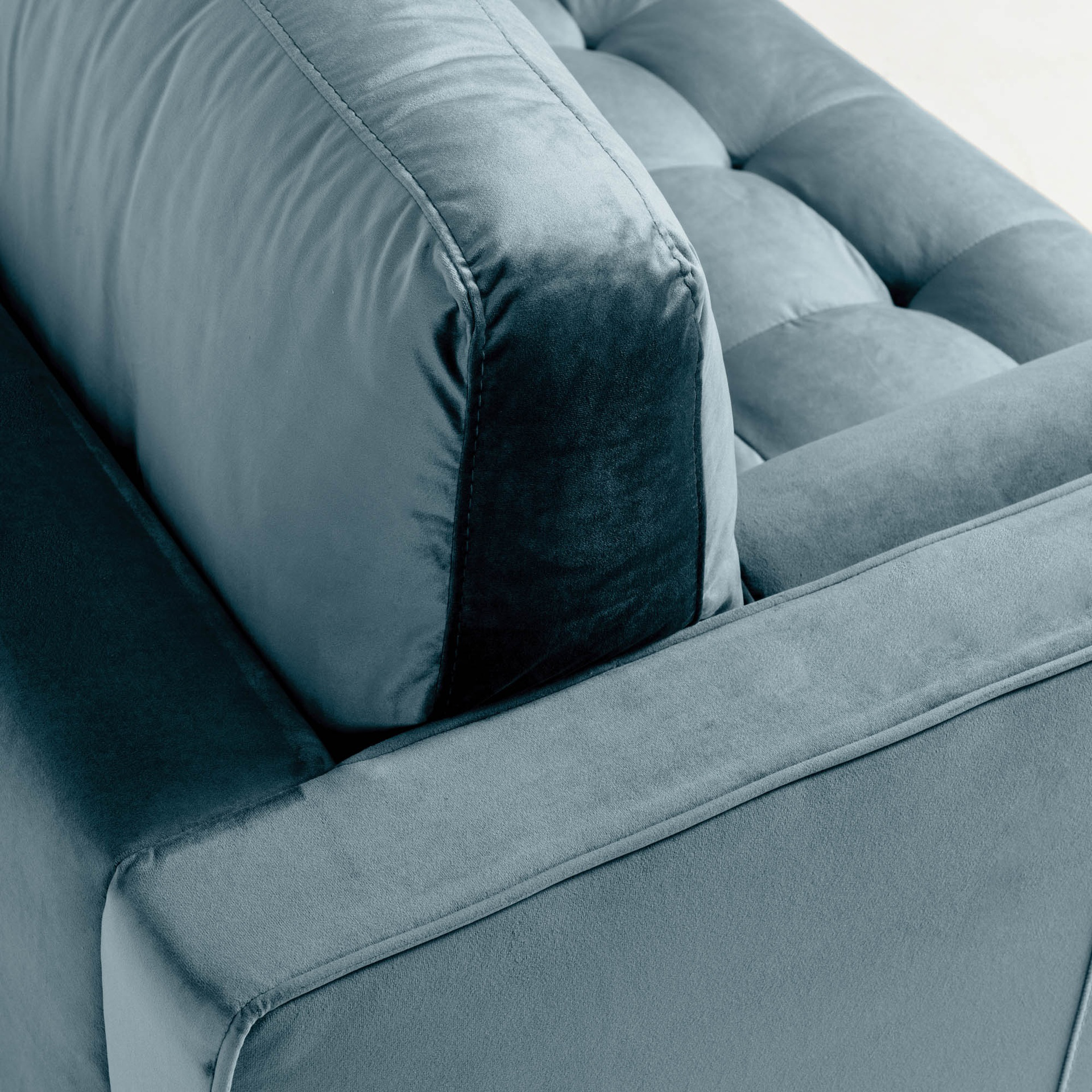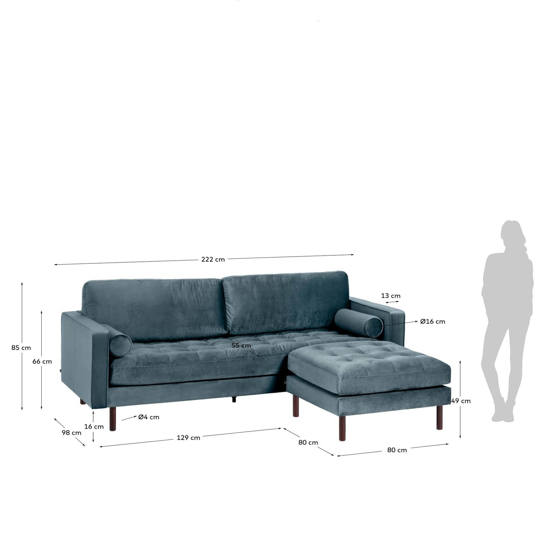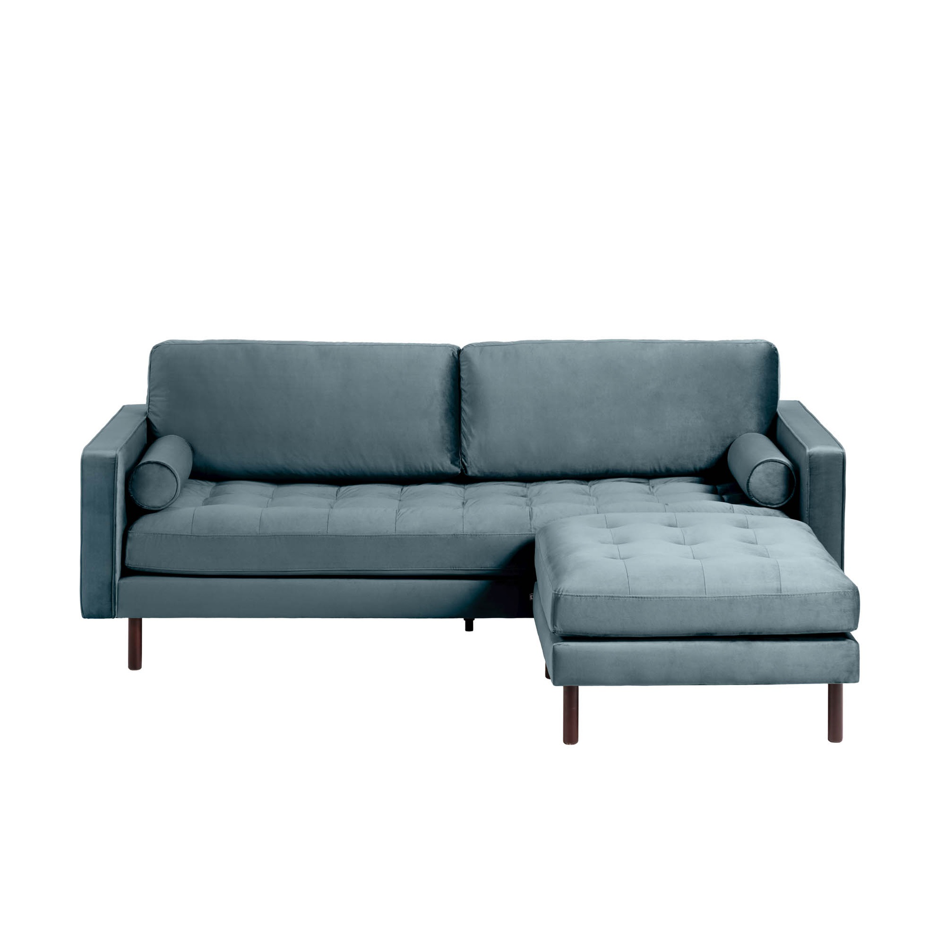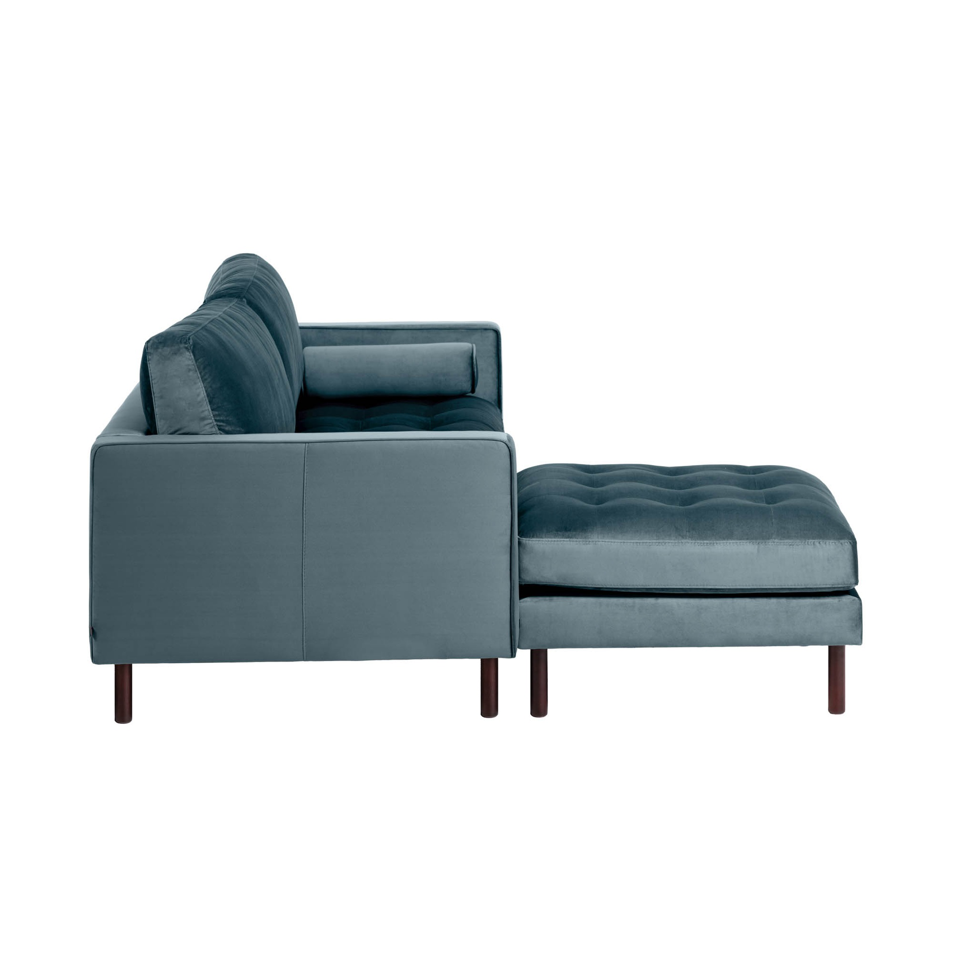 Sofá Bogart 3 plazas con reposapiés terciopelo turquesa 222 cm