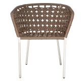 Bolaños silla cómoda y estética fabricada en acero con pintura electroestática y tejida en cuerda plana de multifilamento de polipropileno con terminado UV de 16mm. Para uso exterior techado.