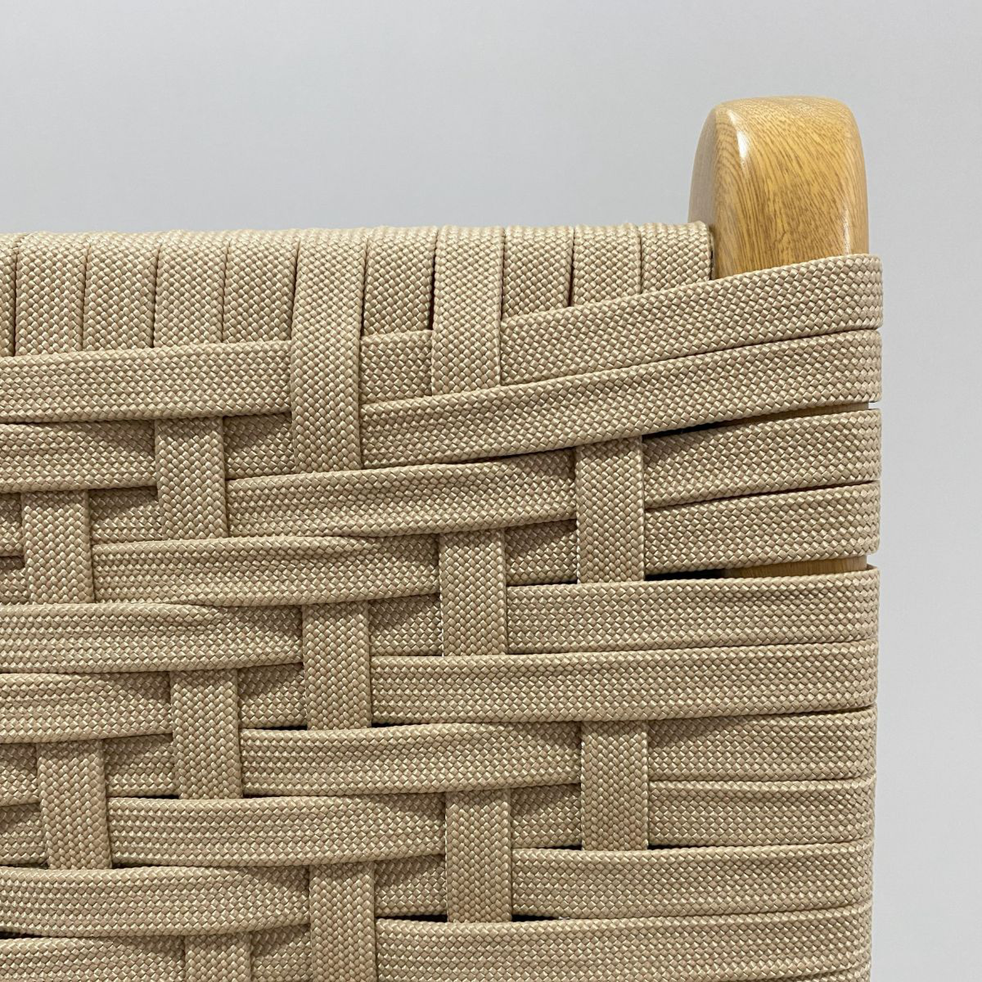 Silla hecha con madera de rosa morada y tejida con nylon.