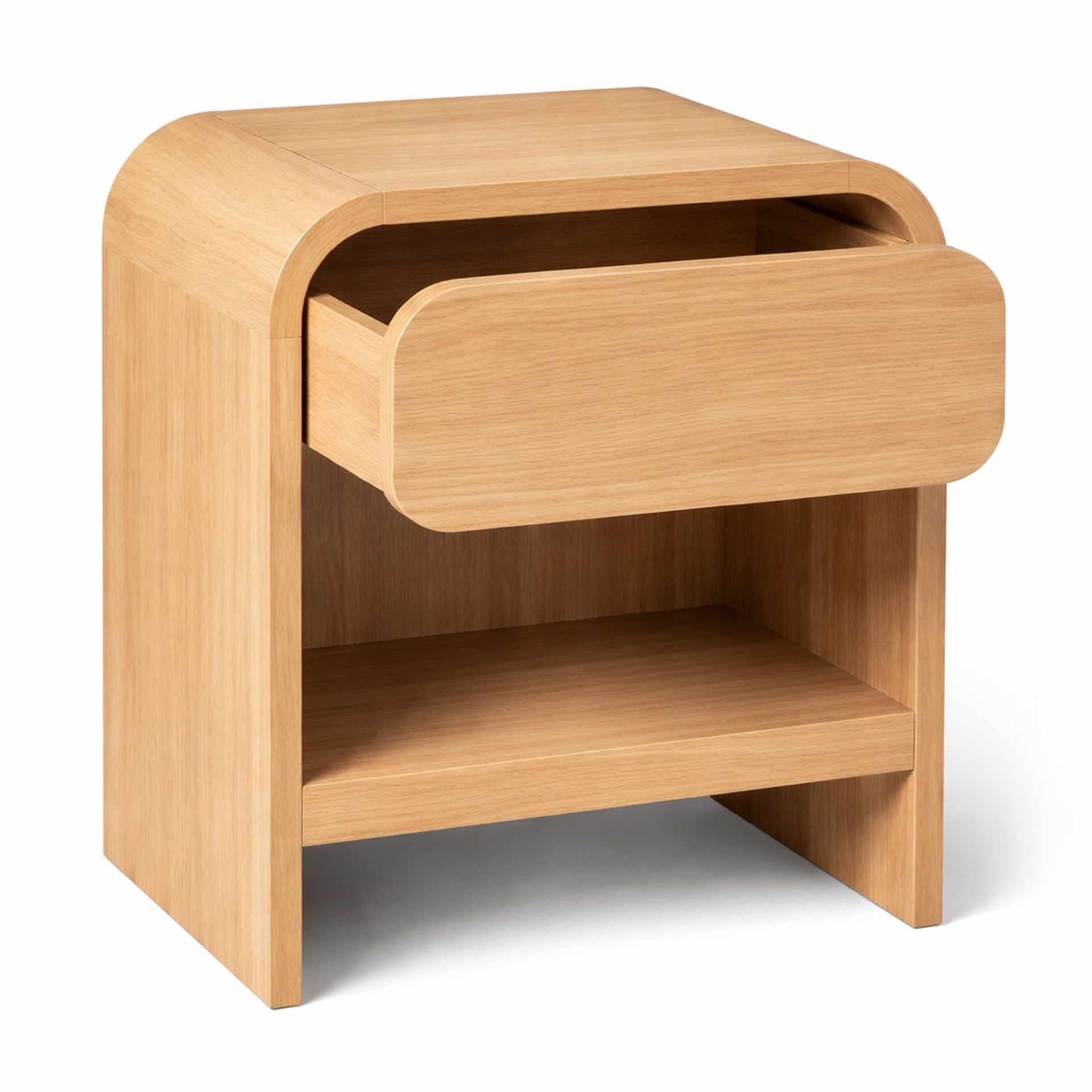 MESA DE NOCHE CON CAJON CON ESQUINA REDONDEADA 40 largo * 55 cm alto * 40 cm profundidad medidas exactas, hacer resaque para que funcione como manija