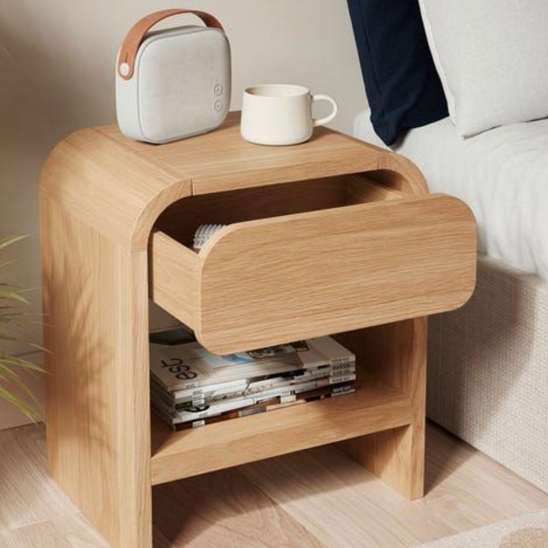 MESA DE NOCHE CON CAJON CON ESQUINA REDONDEADA 40 largo * 55 cm alto * 40 cm profundidad medidas exactas, hacer resaque para que funcione como manija <div id="adicional"> <br> PRODUCTO DE FABRICACIÓN<br> Tiempo de entrega: Con Stock: 8 días hábiles, Sin Stock: 8 a 12 semanas.</div>