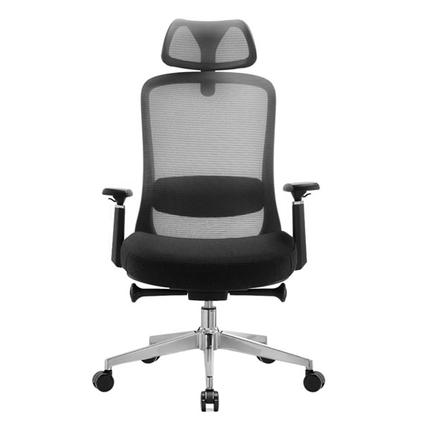 Silla ergonómica de oficina con respaldo y cabecera ajustable en malla transpirable, asiento grueso y suave, descansabrazos ajustables 3D y mecanismo con bloqueo multiposicional. Ideal para largas jornadas de trabajo con comodidad y estilo moderno.