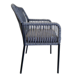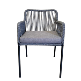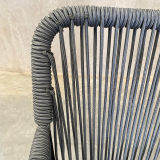 Para uso en exterior techado, la silla Chapala es una de las piezas mas bellas de nuestra colección corazón de México, fabricada en estructura metálica pintada al horno y tejida con cordón de multifilamento de polipropileno de 6mm con cojín..