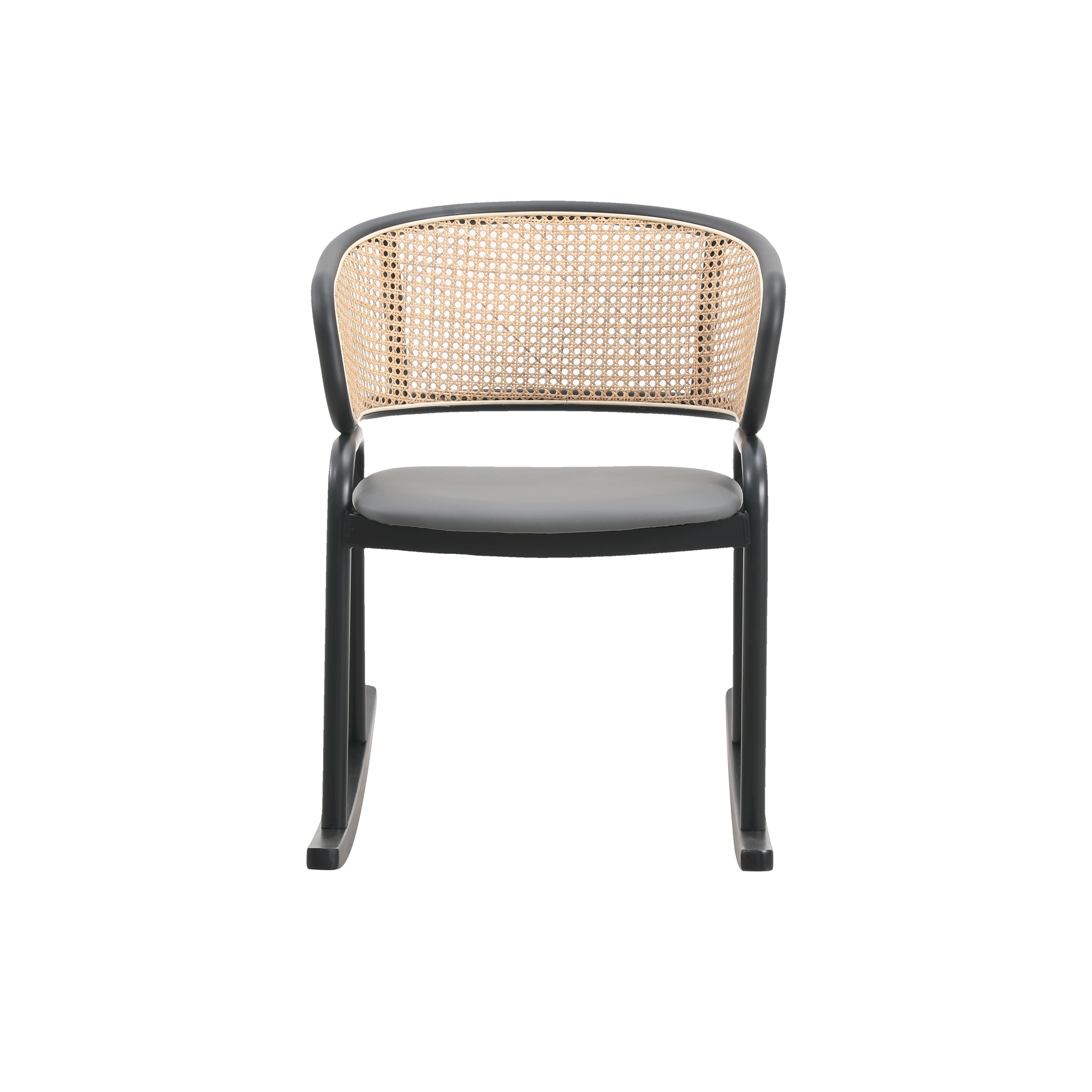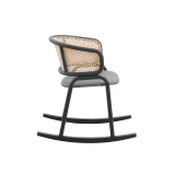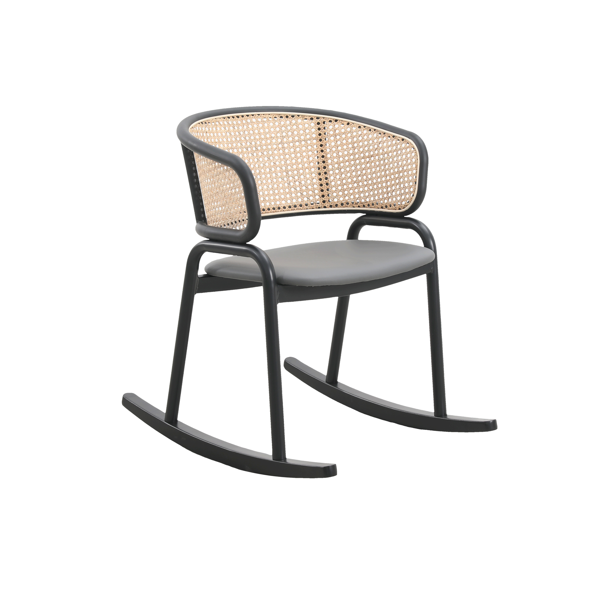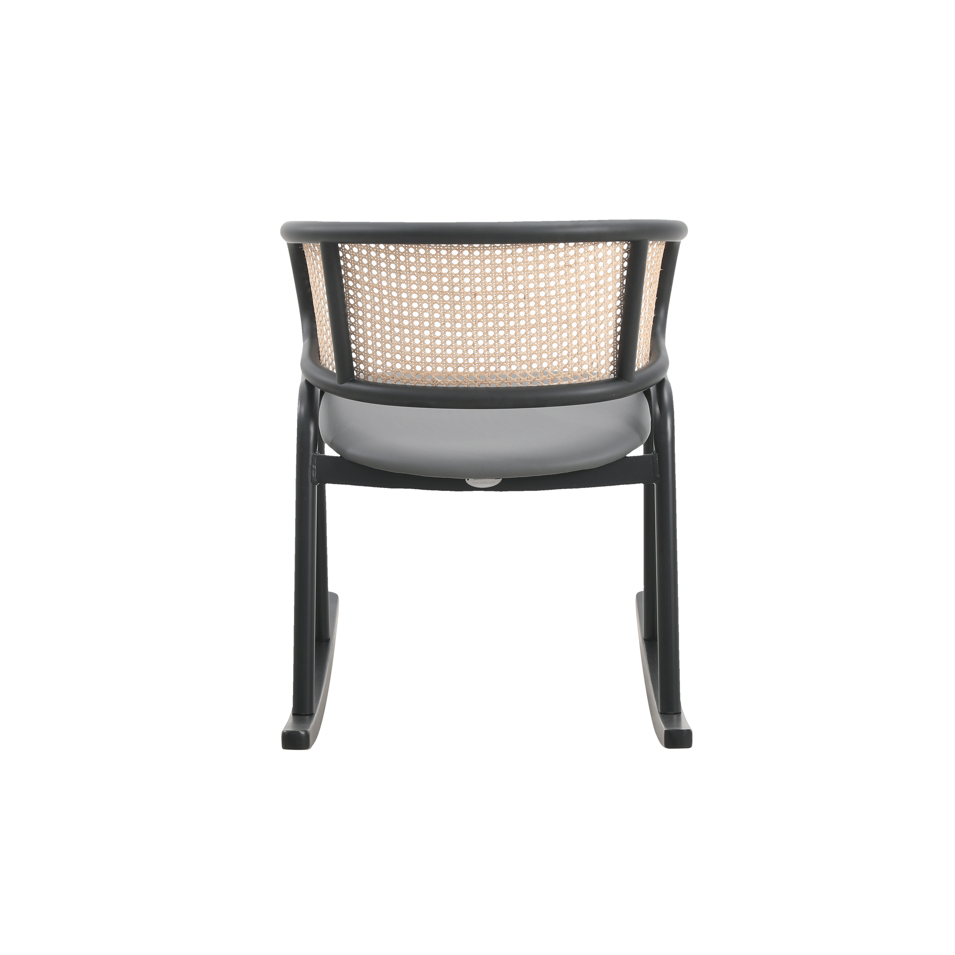 Cinque terre mecedora fabricada en hierro negro, ratán natural y asiento en polipiel de color gris.
