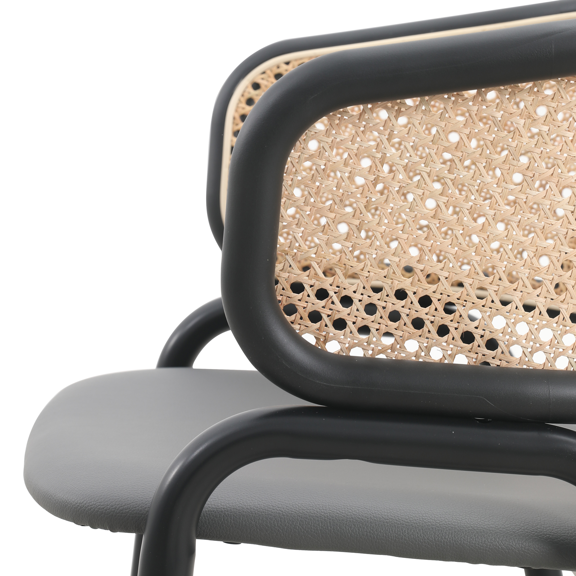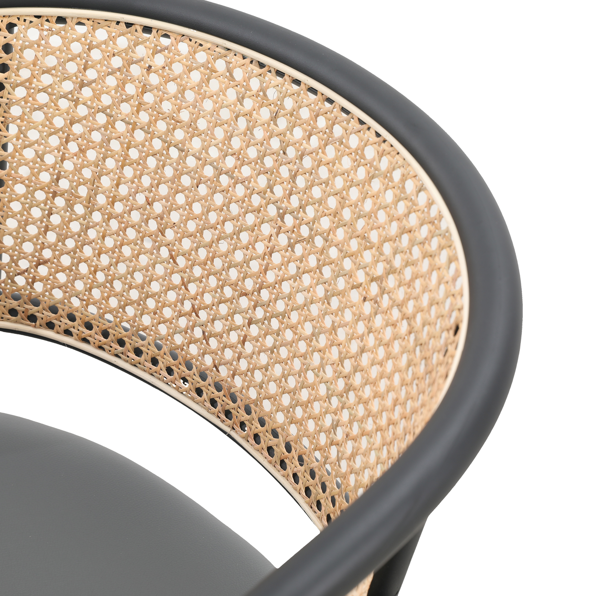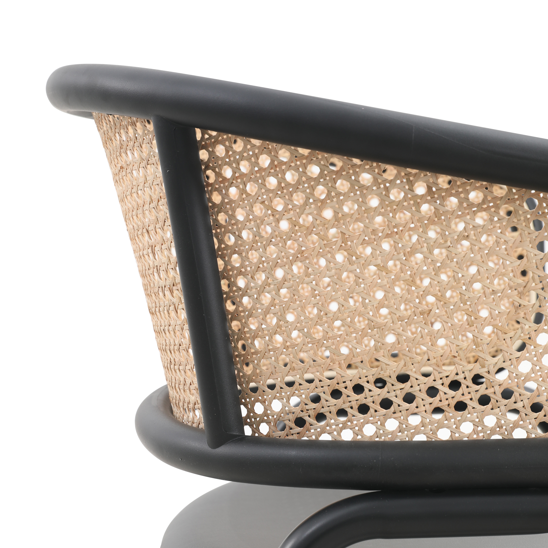 Cinque terre mecedora fabricada en hierro negro, ratán natural y asiento en polipiel de color gris.