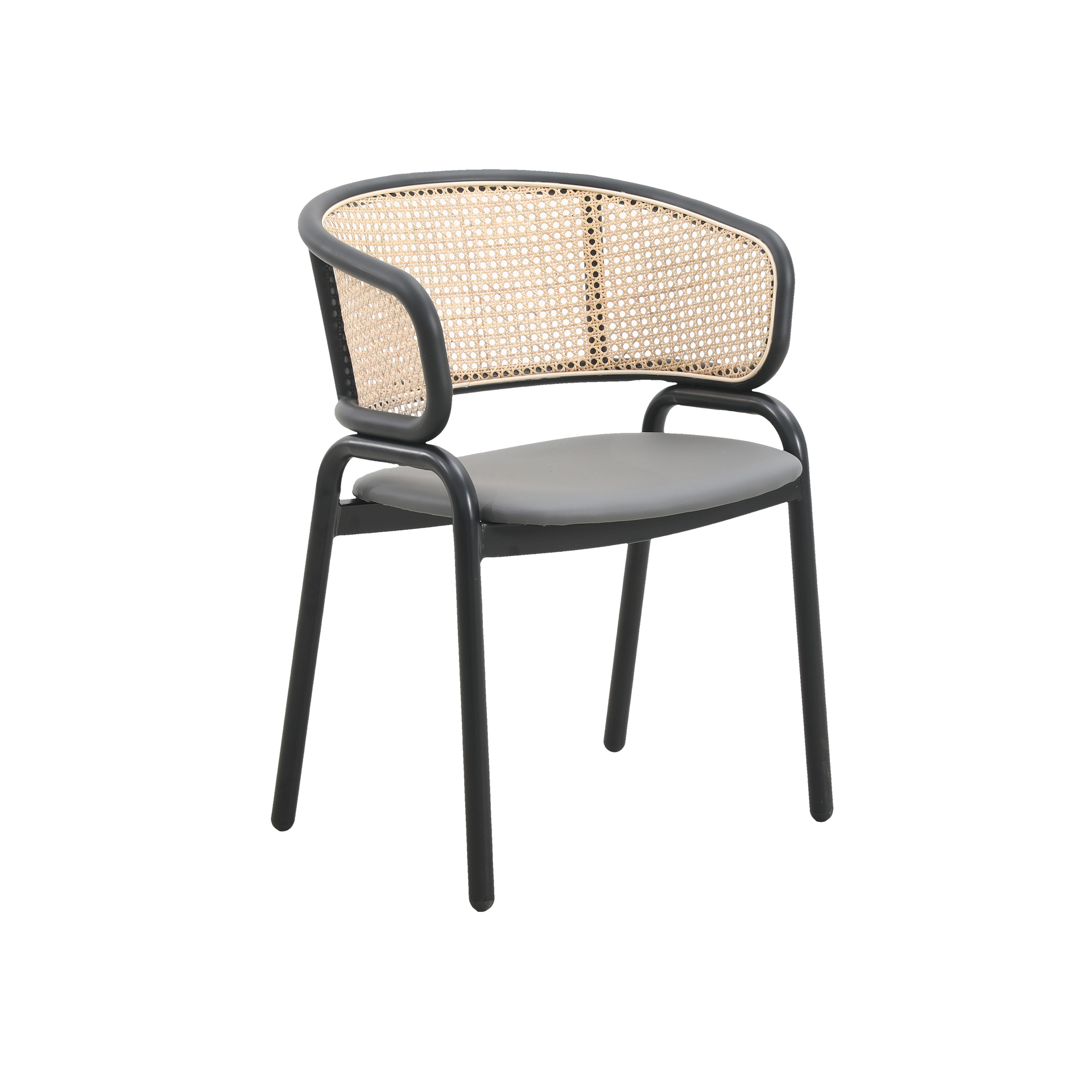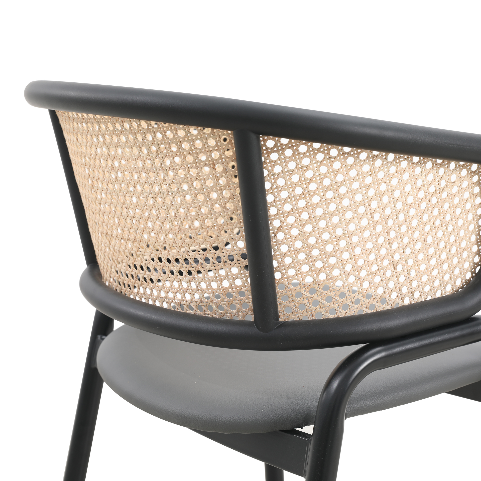 Cinque terre silla estilo vintage realizada con la estructura de tubo metálico en color negro, asiento acolchado y tapizado en polipiel color gris, y respaldo de ratán natural. Una silla que no dejará indiferente por su diseño y estilo vintage, su confort y su funcionalidad. Medidas: 56 x 52 x 76 cm. Altura del asiento: 45 cm.
