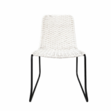 Silla tejida artesanalmente en cuerda de multifilamentos de polipropileno, estructura de acero con acabado en pintura electroestatica. Ideal para espacios pequeños.