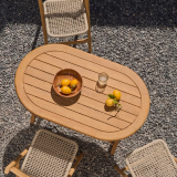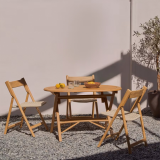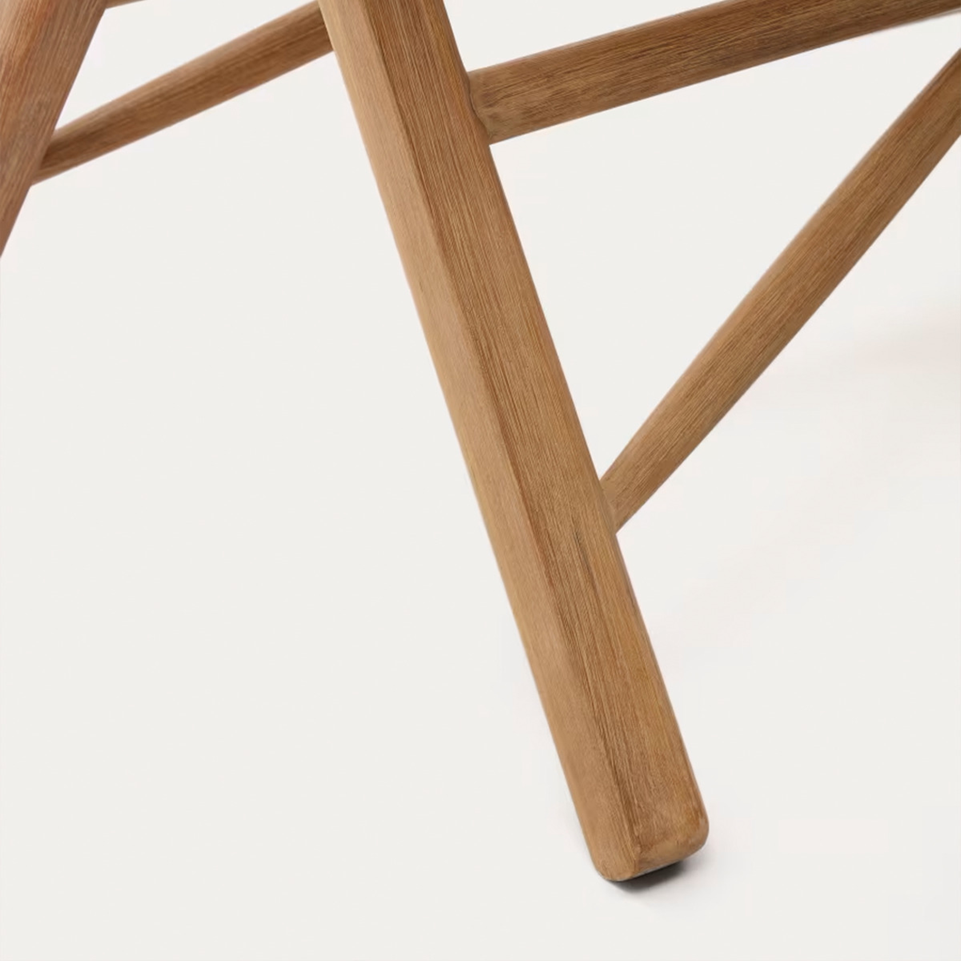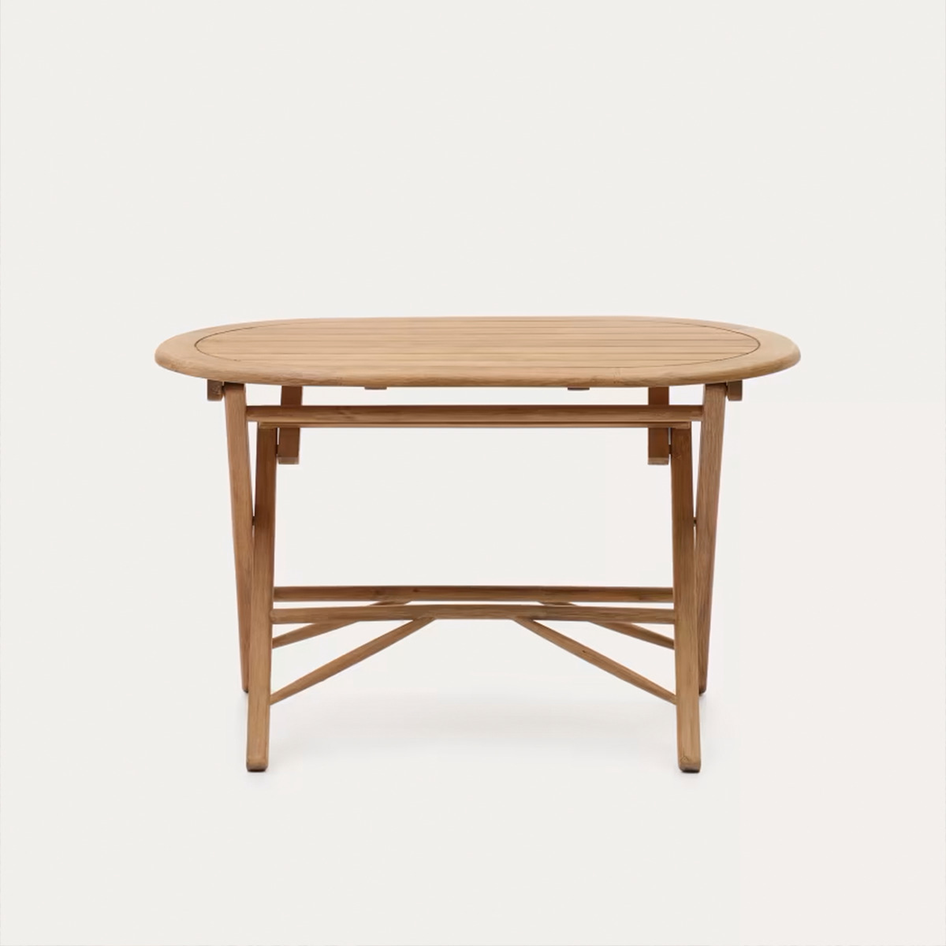La mesa plegable Dandara, hecha de madera maciza de acacia con un acabado natural, combina funcionalidad y estilo. Con unas dimensiones de Ø 120 x 60 cm y certificación FSC 100%, es ideal para aquellos que buscan una solución práctica y sostenible para cualquier espacio.