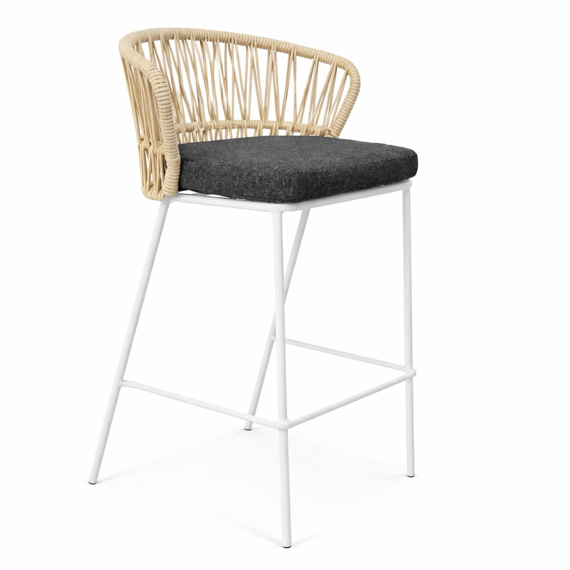 Fabricado en estructura de acero y tejido en cuerda de multifilamento de propileno color beige. Incluye cojin del asiento en tela loneta.