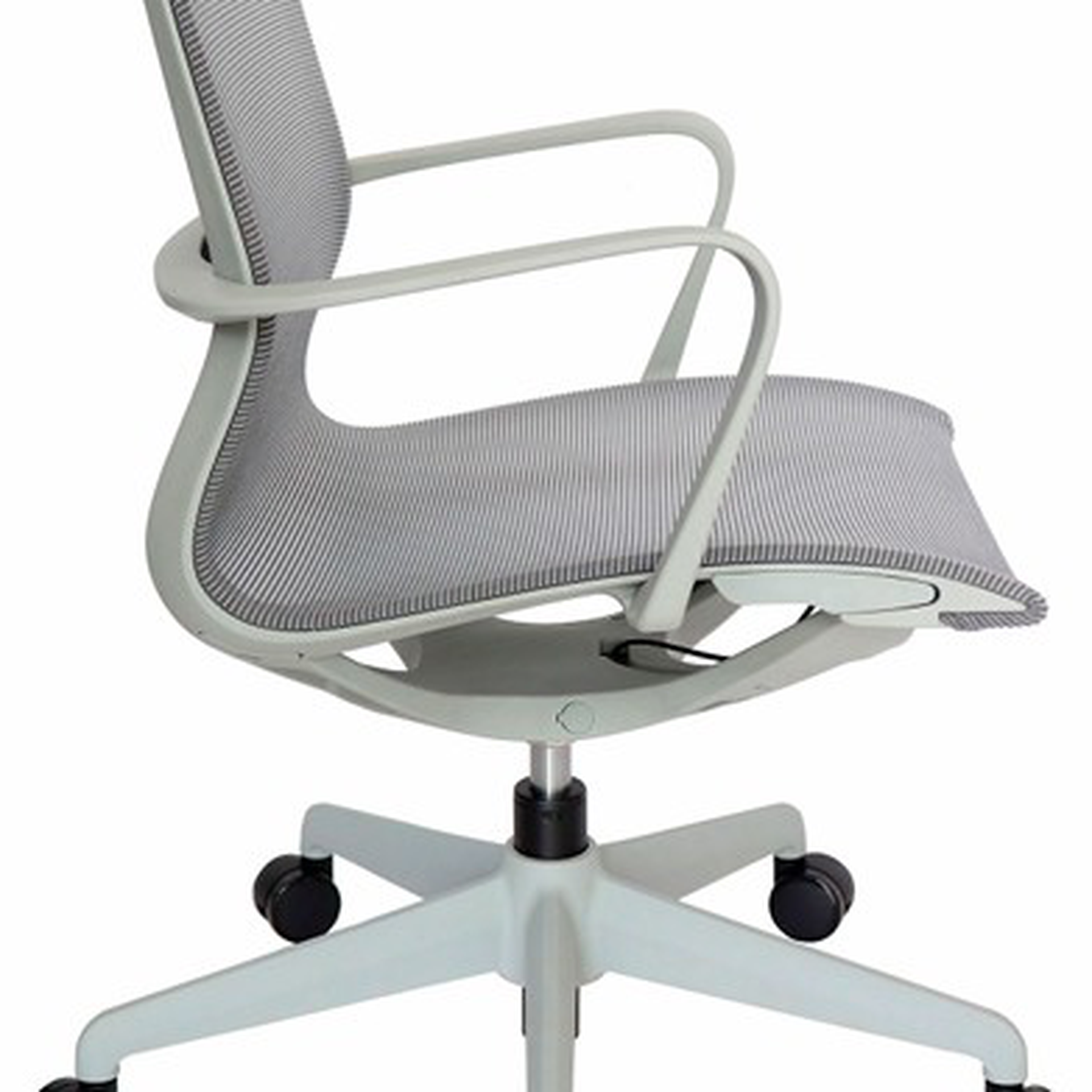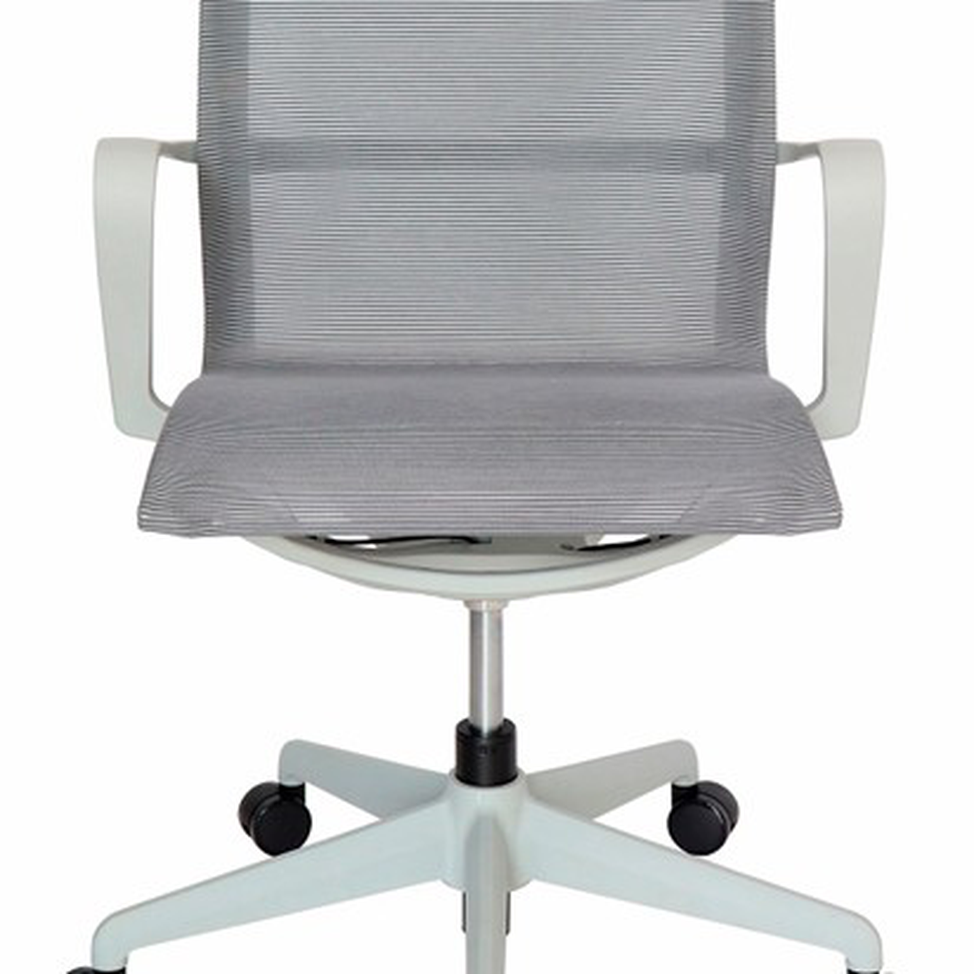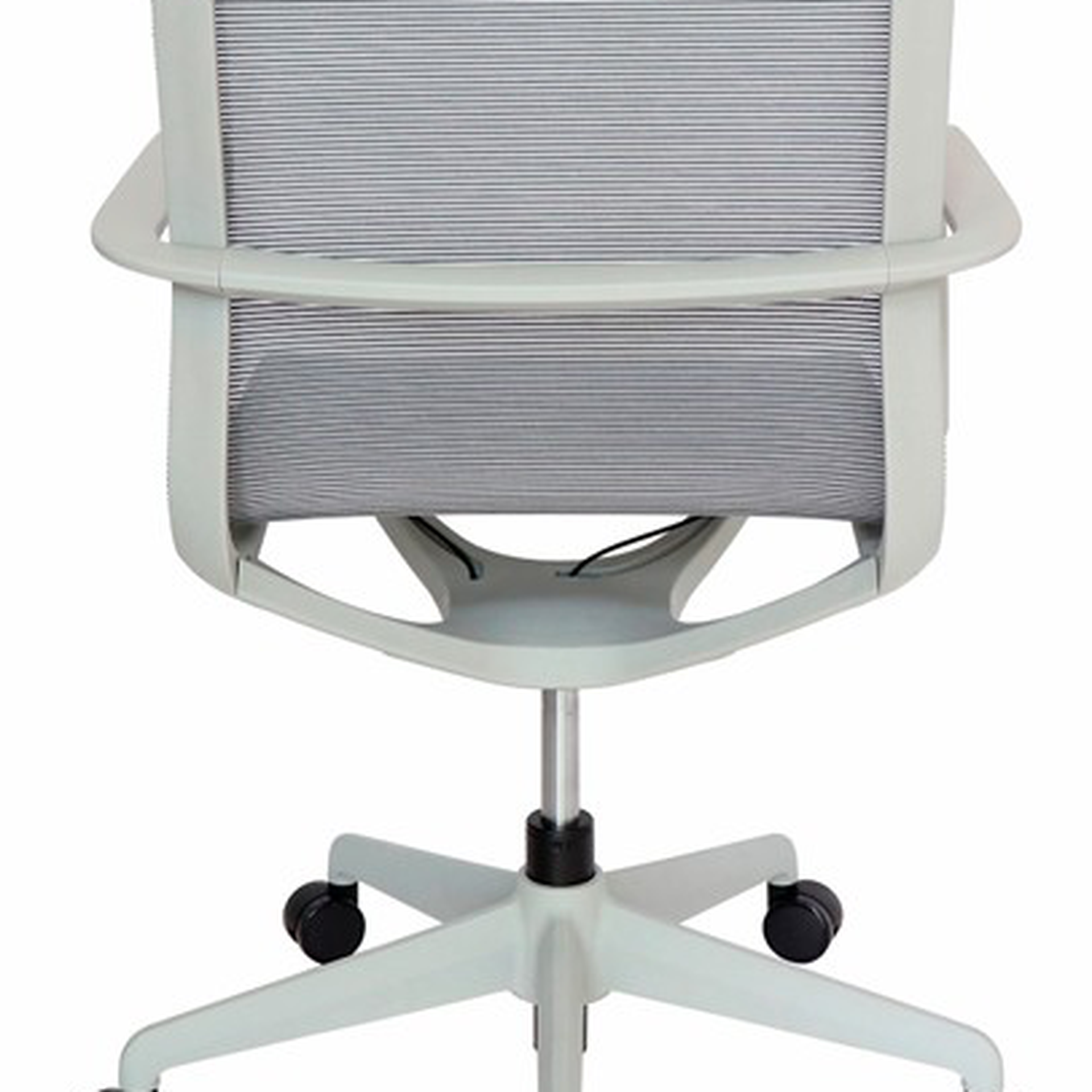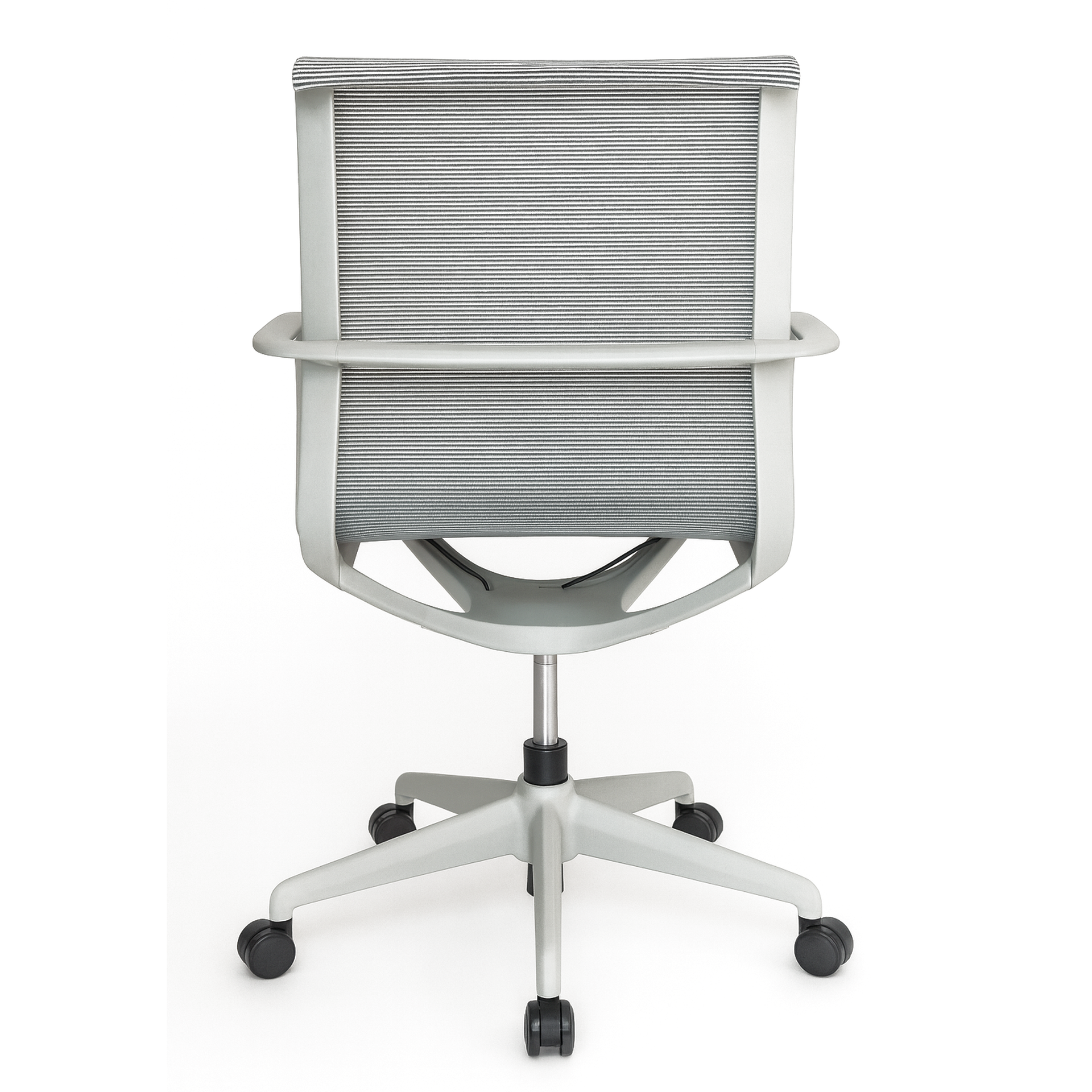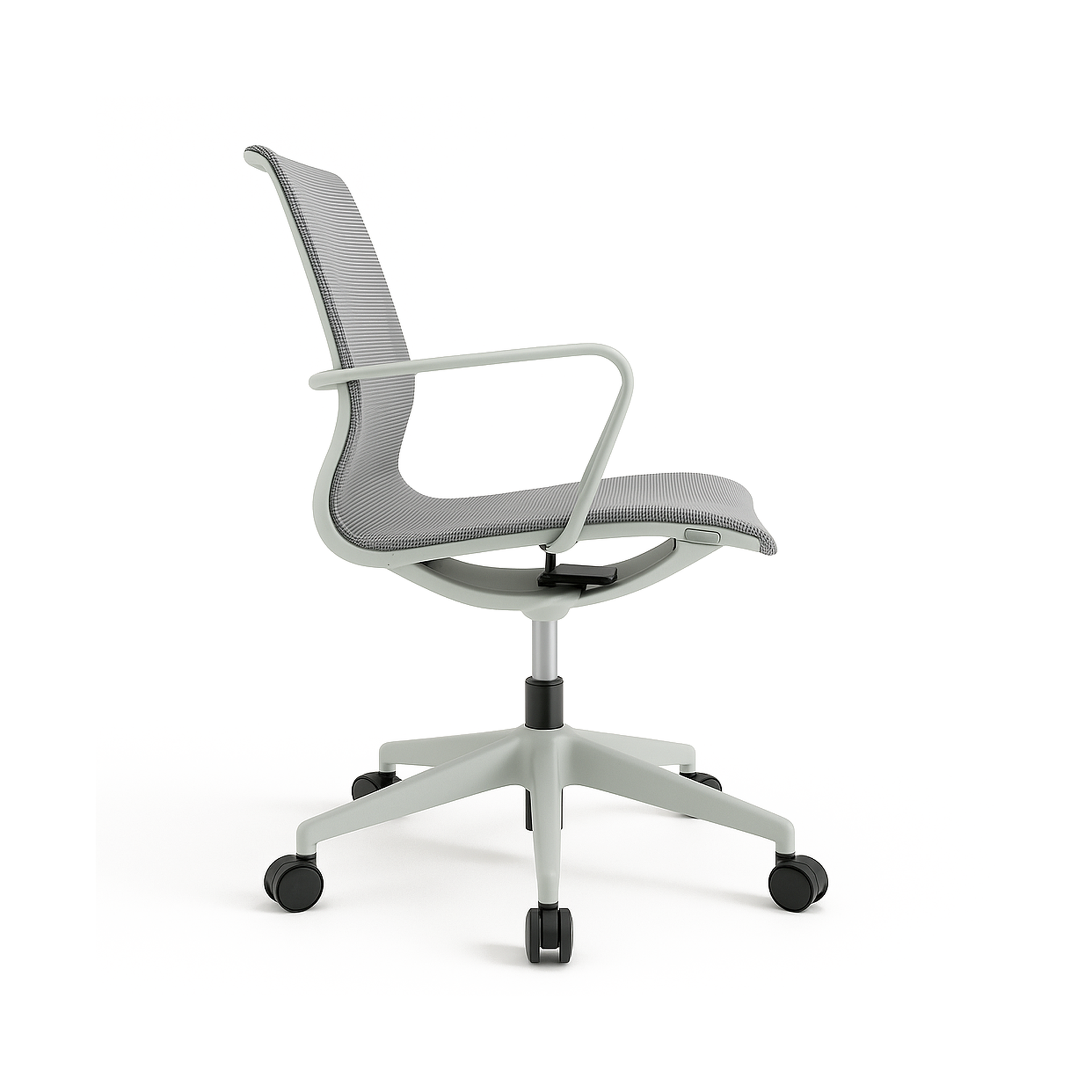 DESCRIPCIÓN base: estrella de 5 puntas en poliamida, rodajas tipo dual. elevación: por medio de pistón neumático que permite ajustar la altura del asiento. mecanismo: acero reforzado con sistema de reclinación y palanca de bloqueo. brazos: de polipropileno semi-rígido. respaldo y asiento: en malla de diseño ergonómico. tapiz: en malla de color gris. resistencia: peso sugerido 100 kgs.
