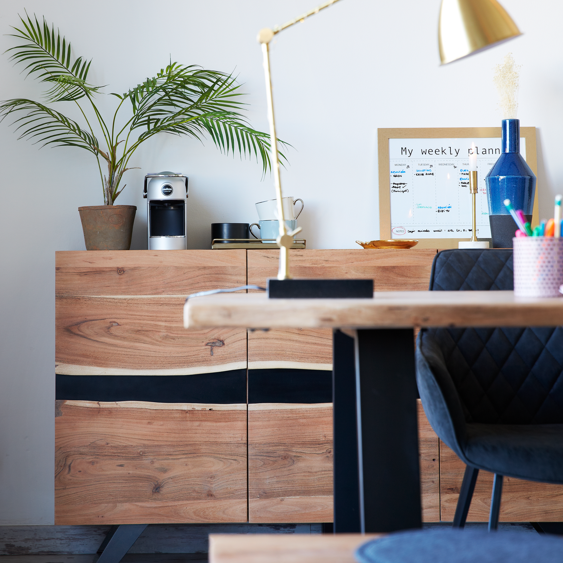 La Irvin credenza cuenta con un generoso espacio de almacenamiento perfecto para tu comedor. Producto importado fabricado en preciosa madera de acacia.