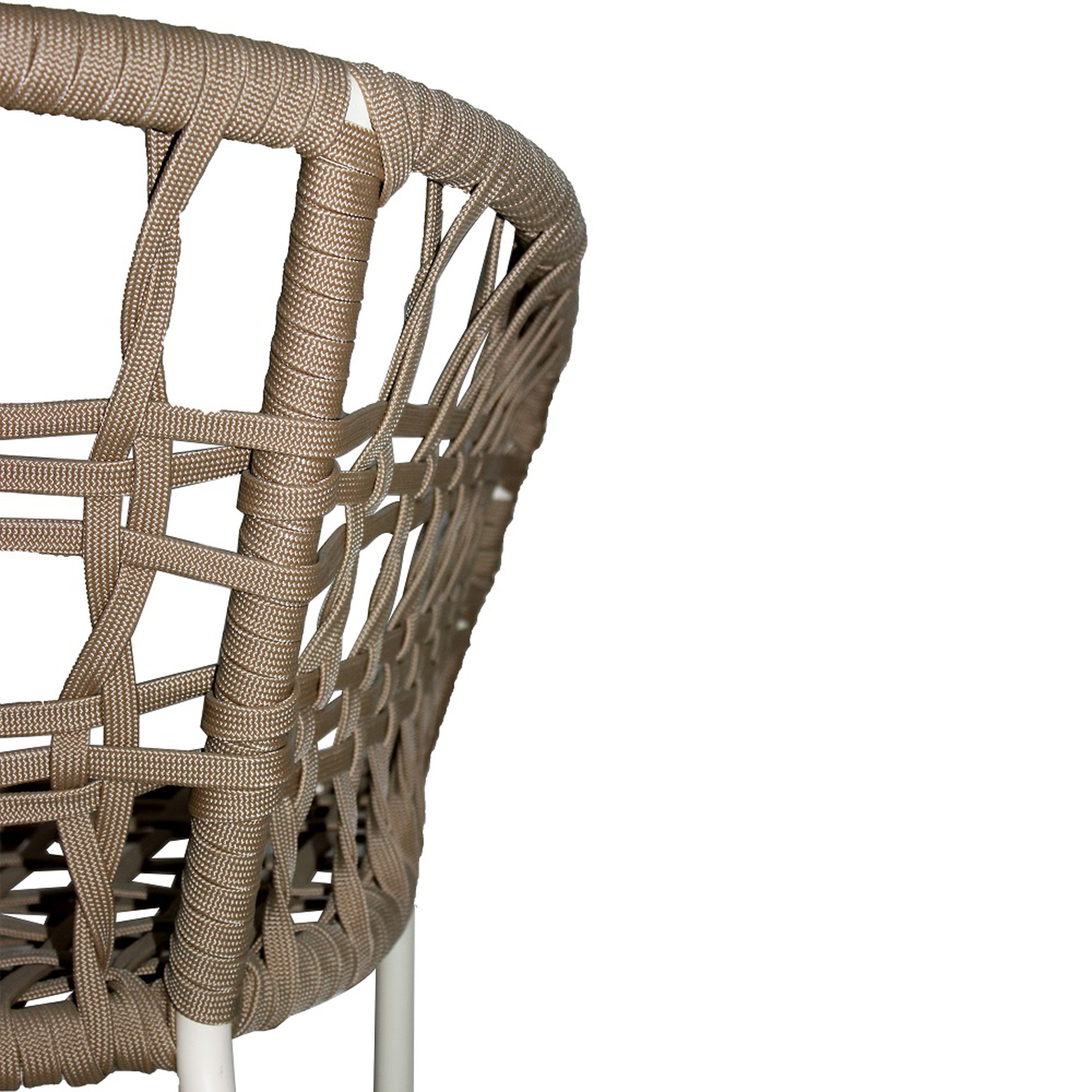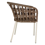 Fabricada en tejido trenzado artesanal y acero con pintura electroestática. Te permitirá usarla en exteriores bajo techo..