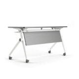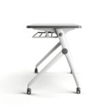 Mesa abatible por medio de botones en ambos costados, con cubierta en melamina de 28 mm. Diseño funcional para salas de capacitación, aulas y oficinas, que permite configuraciones flexibles y fácil manejo. Ideal para uso institucional y corporativo.