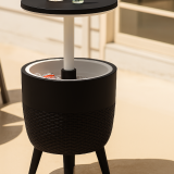 Nuestra exclusiva hielera Cancún está especialmente diseñada para fiestas y eventos. Una combinación de hielera y mesa de altura ajustable, este elemento de La mesa auxiliar y hielera Miami está diseñada especialmente para fiestas y reuniones. Su diseño multifuncional combina una práctica hielera en la base con una mesa de altura ajustable en la parte superior, ofreciendo todo en un solo producto. Permite mantener las bebidas frías y al alcance mientras se utiliza como superficie de apoyo. Fabricada en polipropileno resistente y fácil de limpiar, es ideal para exteriores, jardines, terrazas y eventos.