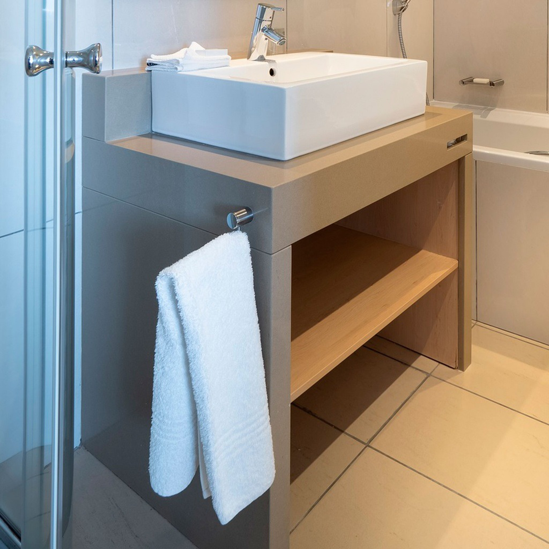 Toalla de manos de alta calidad, con un peso de 180 g y medidas de 40 x 70 cm. Ideal para brindar una absorción efectiva y un toque de confort en cualquier baño o cocina.