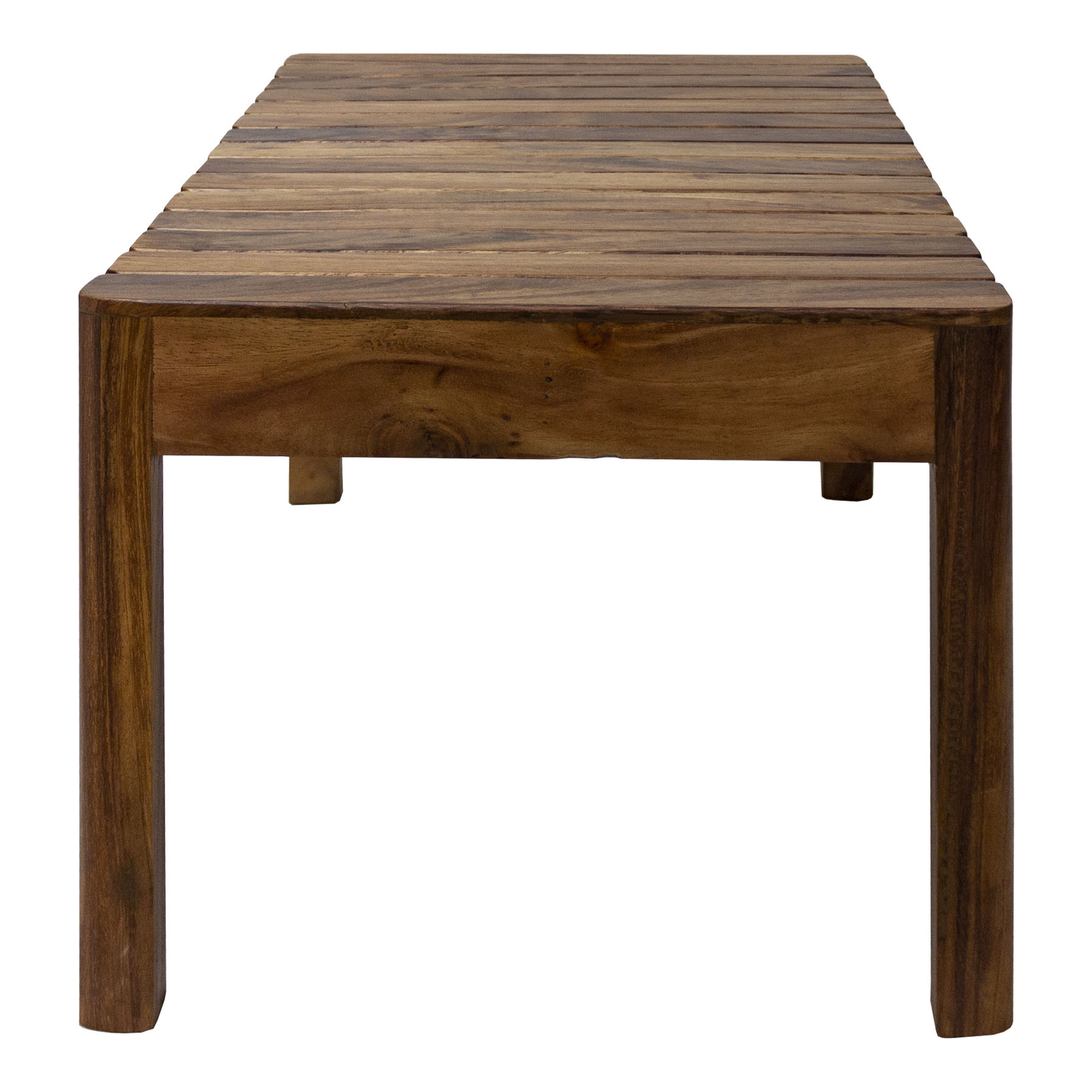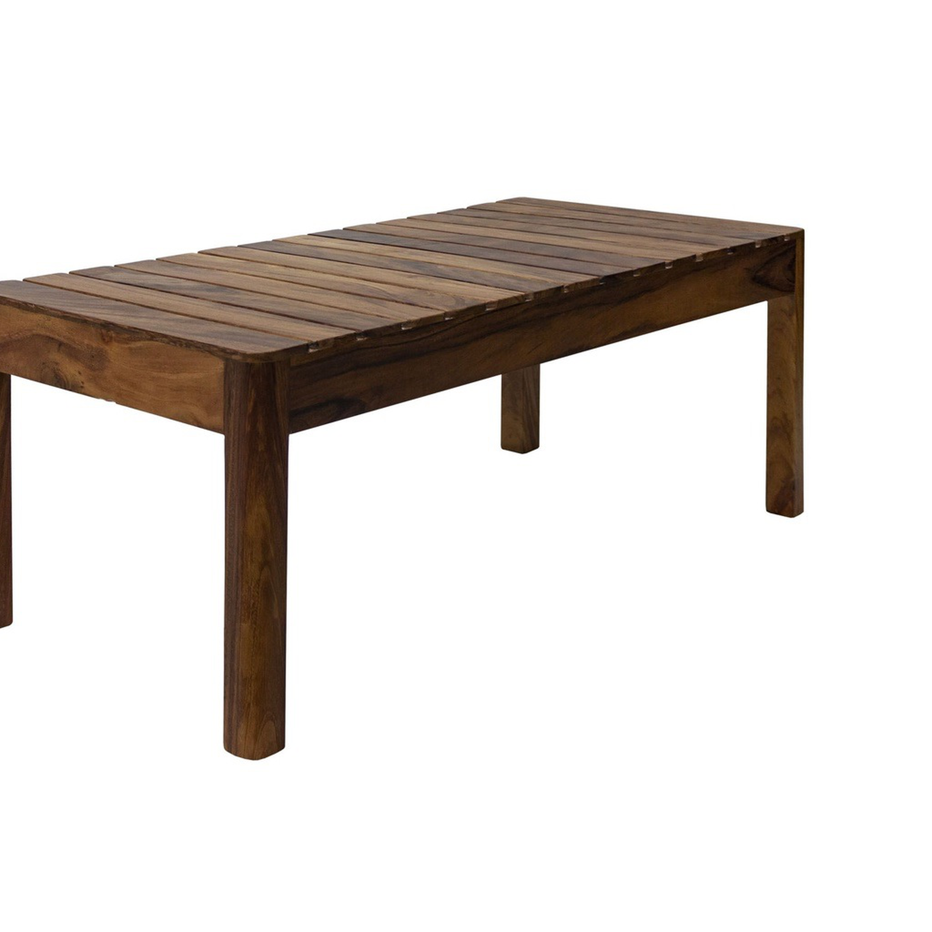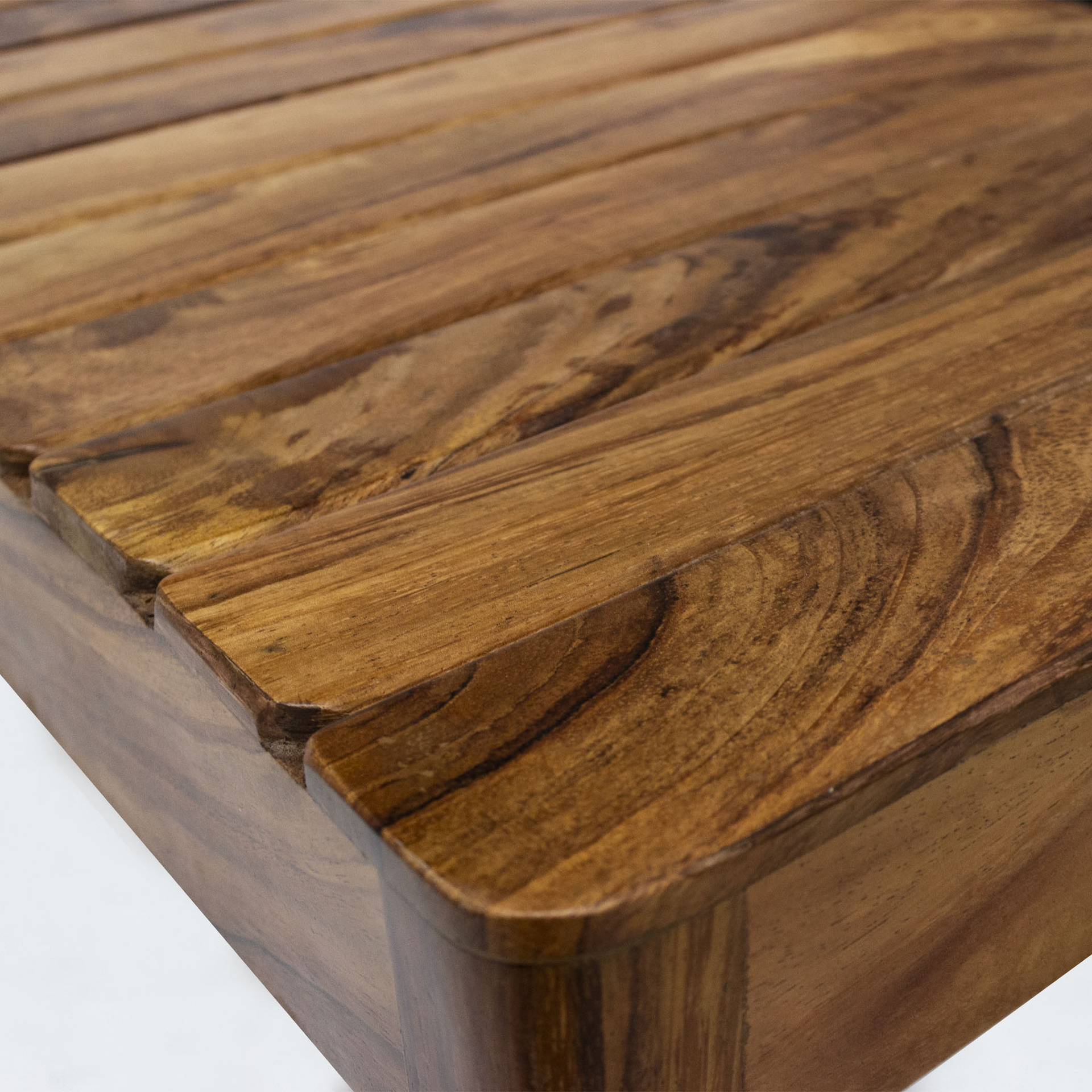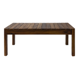 Texturas y betas se funden en esta mesa de centro fabricada en madera de parota..