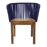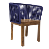 Silla Oaxaca base madera de parota, respaldo metalico tejido a mano con cuerda nylon de 16mm, multifilamento de polipropileno. (exterior techado)..