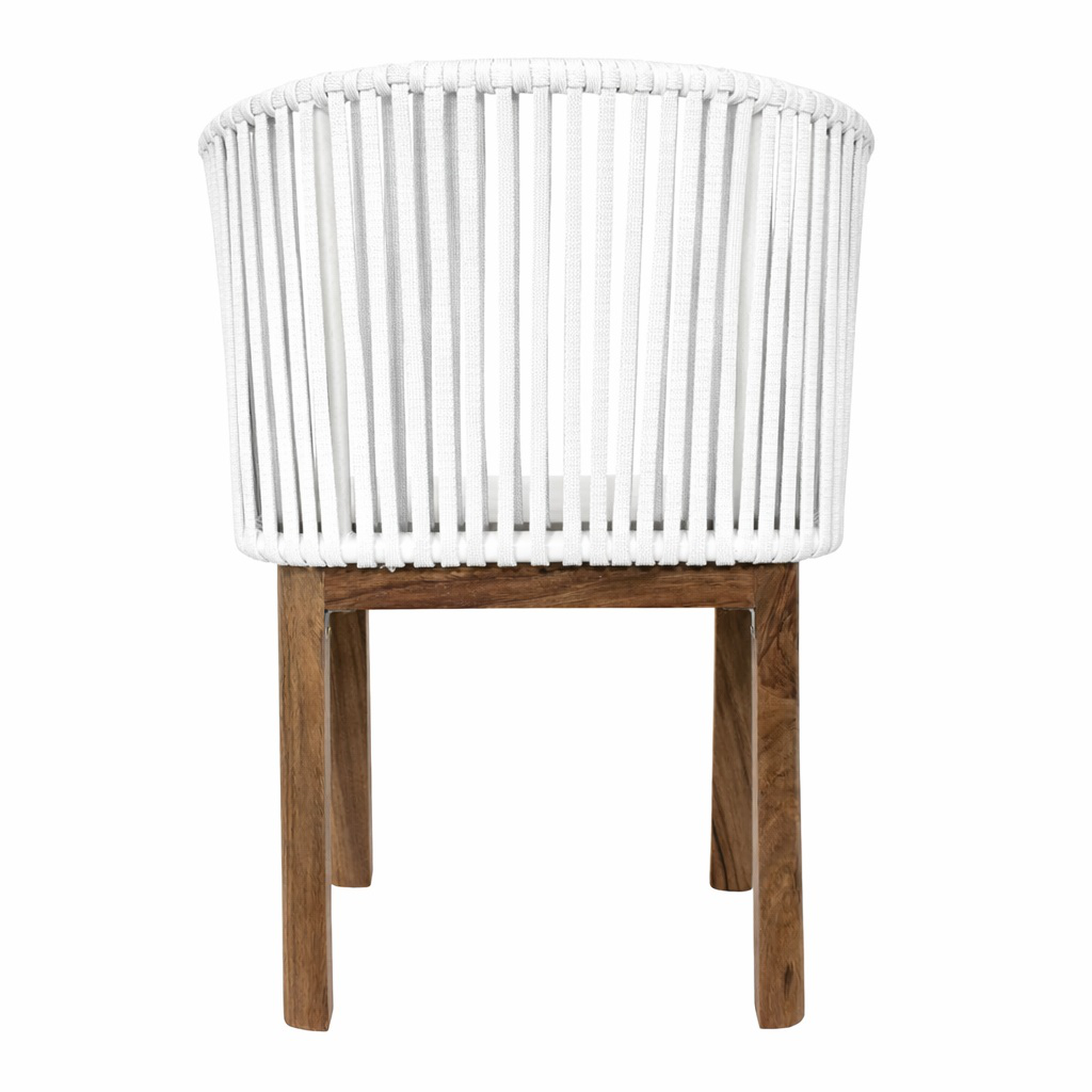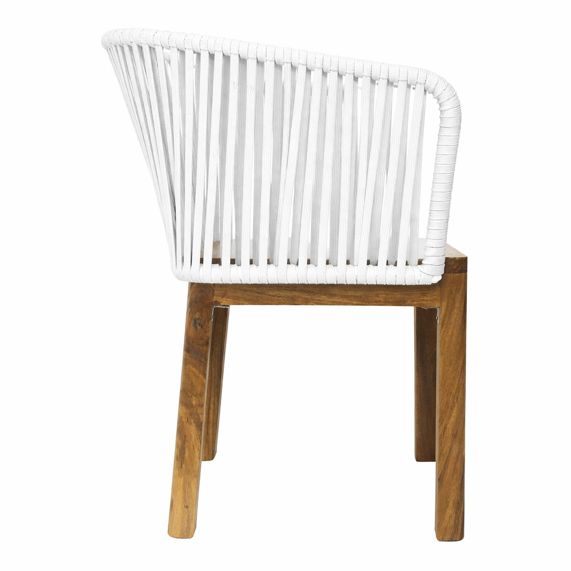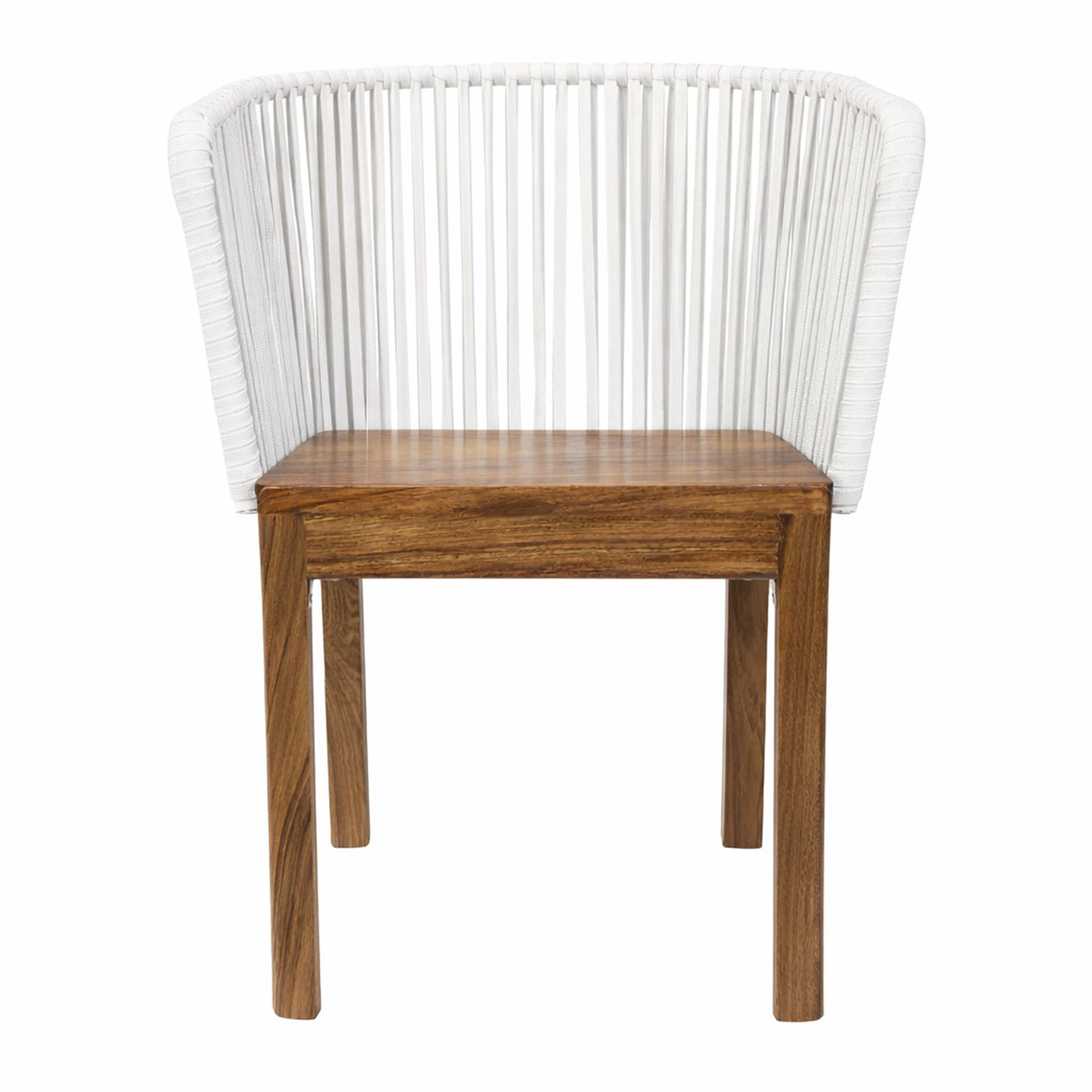 Silla Oaxaca base madera de parota, respaldo metalico tejido a mano con cuerda nylon de 16mm, multifilamento de polipropileno. (exterior techado).