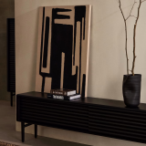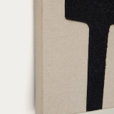 Salmi juega con el positivo y el negativo del color, donde la silueta toma forma a través de la superposición de formas geométricas redondeadas. La textura granulada y sus relieves resaltan la delicadeza de la composición.