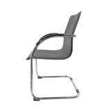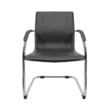 Tapiz en PVC duro, Ligera lámina de hule espuma de alta densidad en asiento y respaldo, Descansabrazos metálicos cromados con pads de PVC duro, Base tipo trineo metalico cromado.
