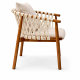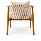 Silla fabricada en madera sólida, cuerda de nylon y tela poliester ideal para restaurantes de alta gama