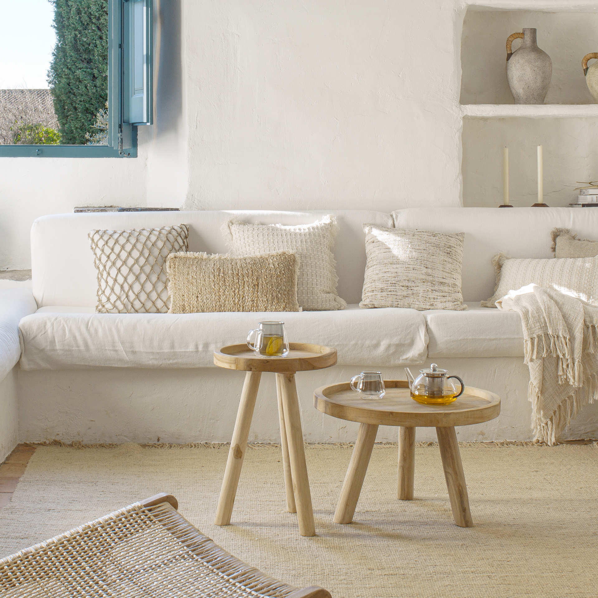 La alfombra Siria, confeccionada en yute, algodón y lana, aporta un toque veraniego y fresco a tus estancias. Con dimensiones de 160 x 230 cm, es perfecta para crear un ambiente acogedor y elegante en cualquier espacio de tu hogar.