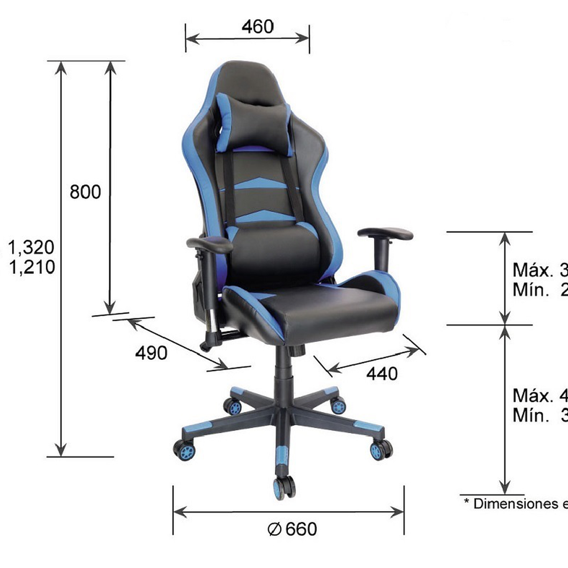 Base: estrella de 5 puntas en poliamida, rodajas tipo dual. Elevación: por medio de pistón neumático que permite ajustar la altura del asiento. Mecanismo: plato de acero reforzado con sistema de reclinación y palanca de bloqueo, perilla de regulación de tensión para el sistema de reclinación.