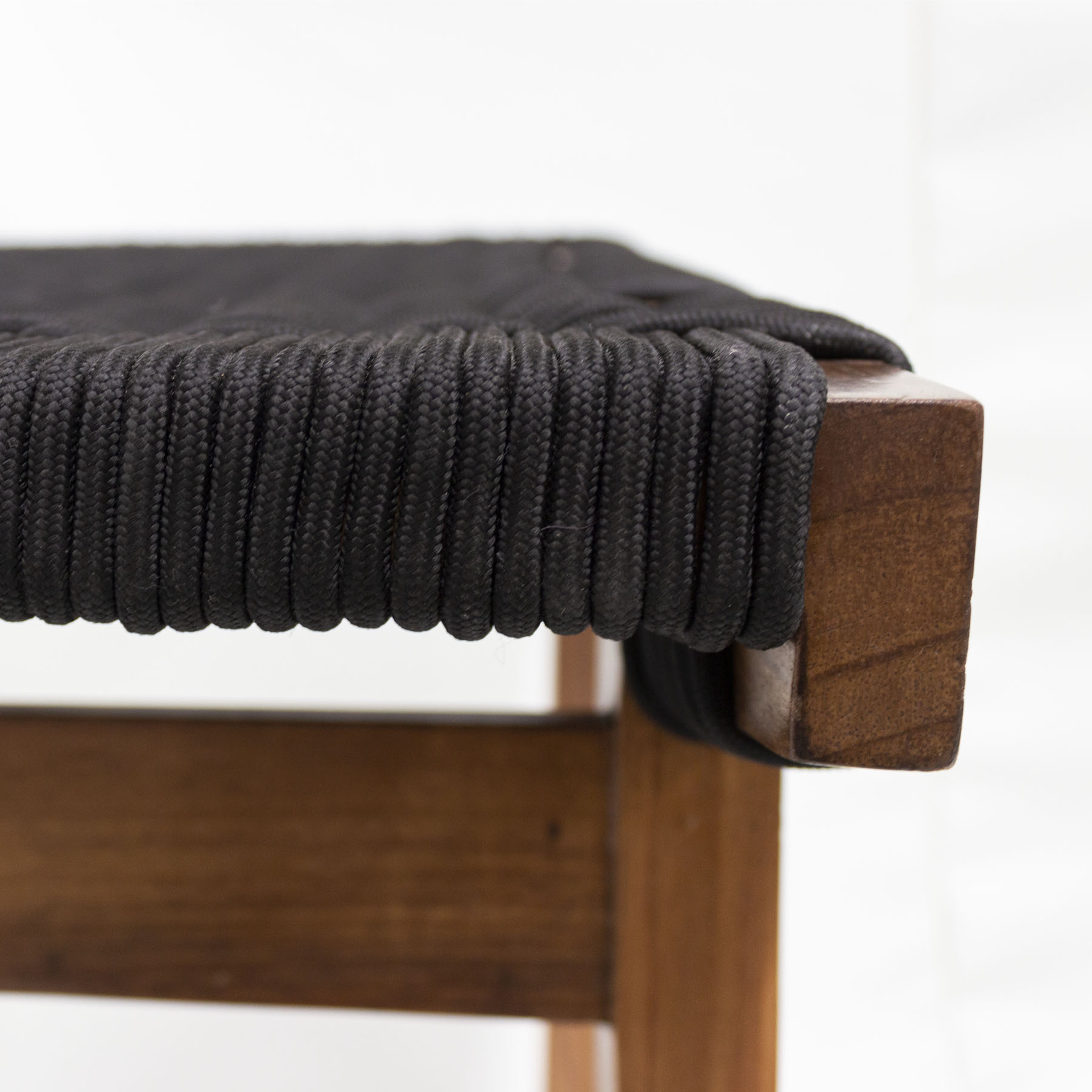Estructura de madera de parota tejido con cuerda trenzada de 6mm. Medidas 63x60x63cm..