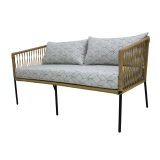 Para uso en exterior techado. Fabricado en acero con pintura electroestática y cuerda multifilamento de polipropileno (incluye cojinería en tela loneta para exterior techado)