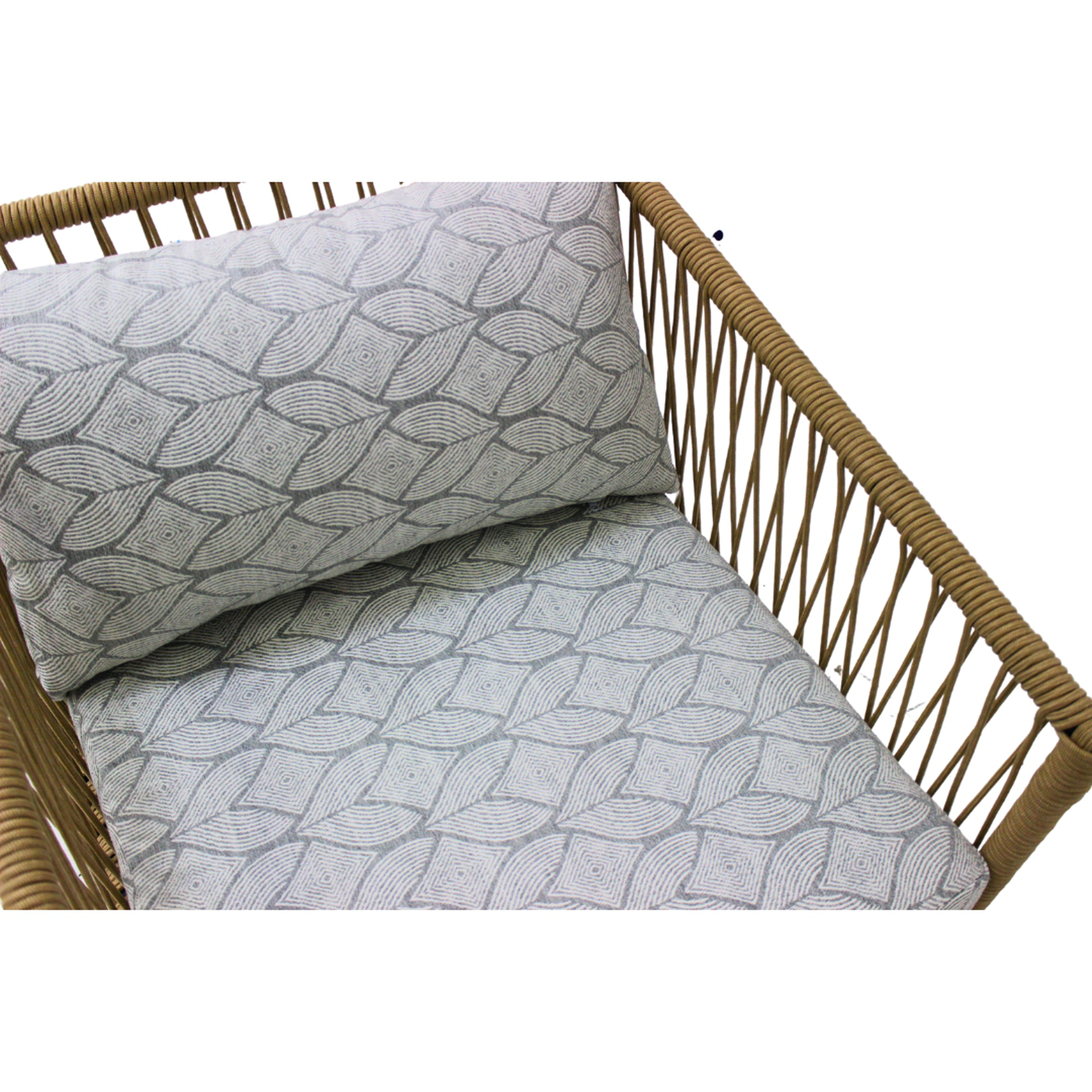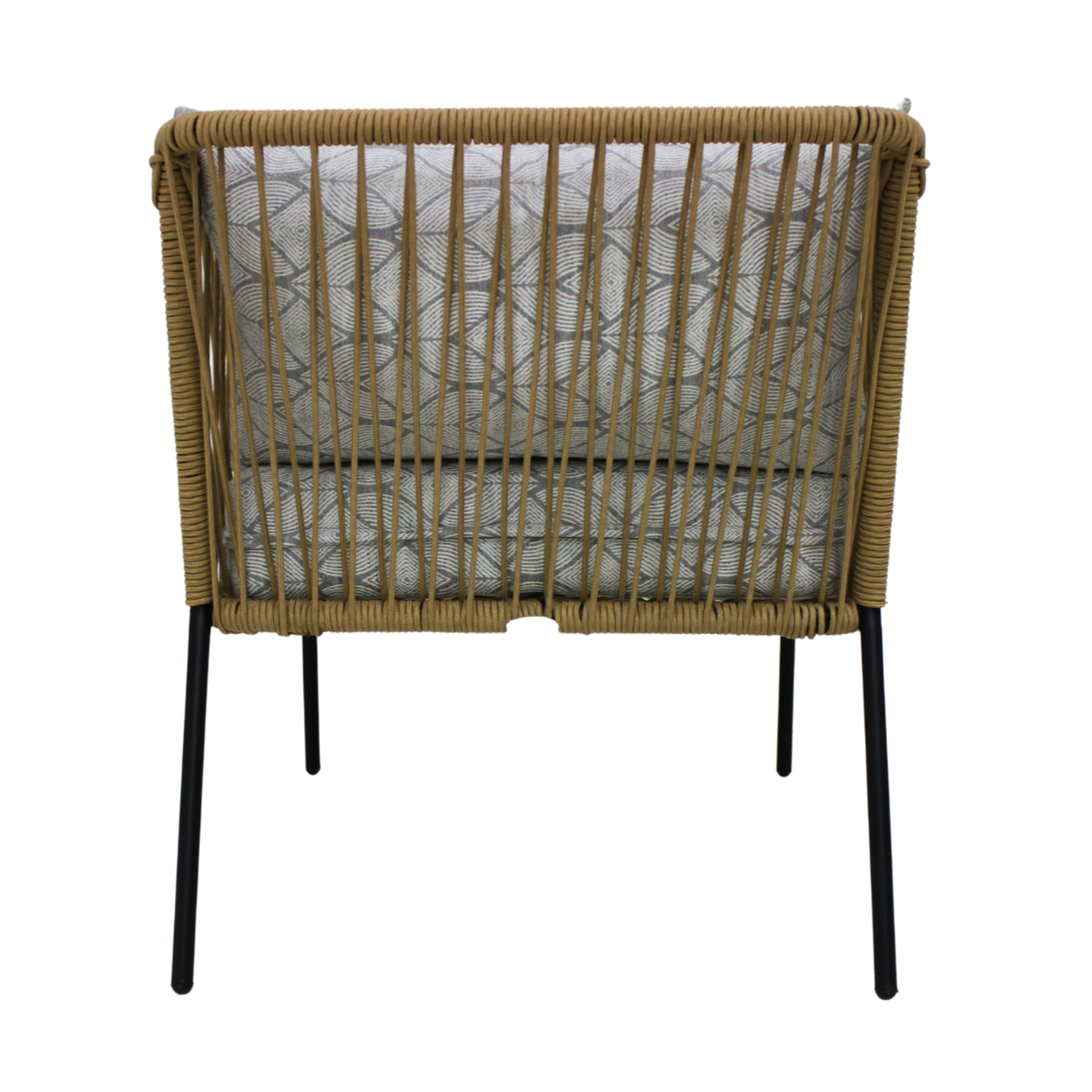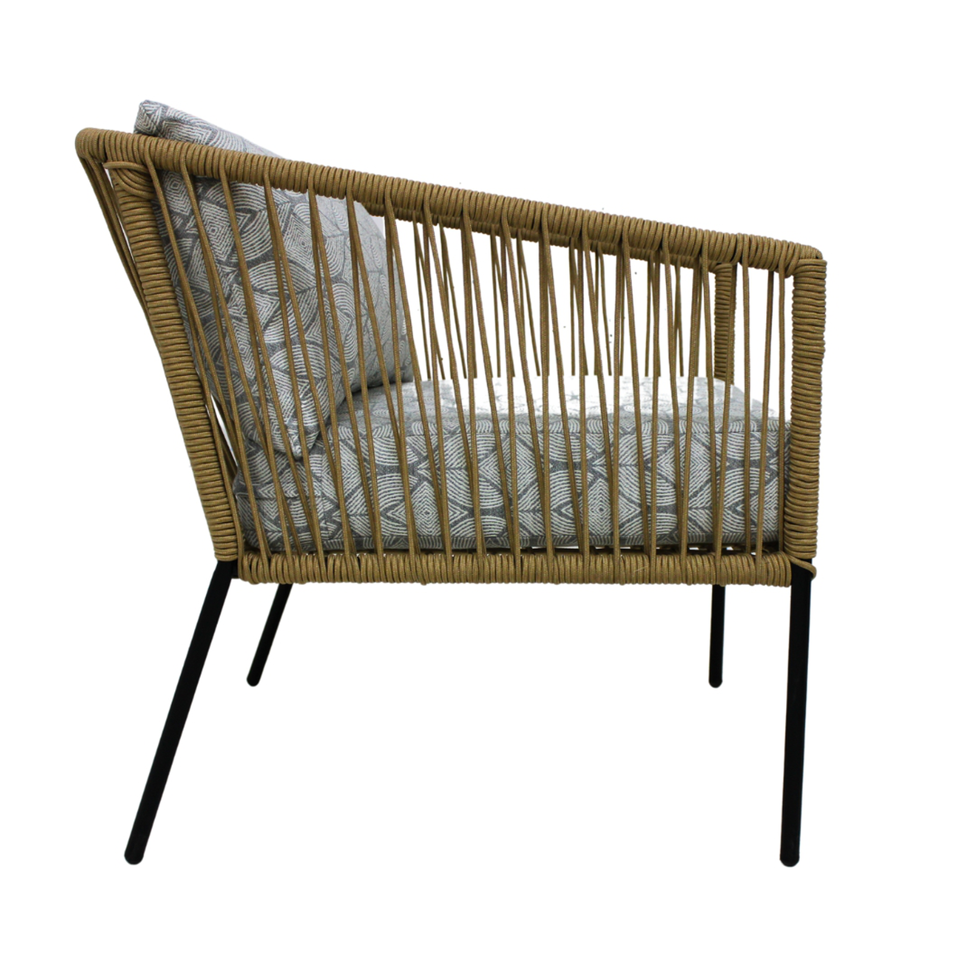 Para uso en interiores. Fabricado en acero con pintura electroestática y cuerda multifilamento de polipropileno (incluye cojinería en tela curri)