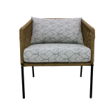 Para uso en exterior techado. Fabricado en acero con pintura electroestática y cuerda multifilamento de polipropileno (incluye cojinería en tela loneta para exterior techado)